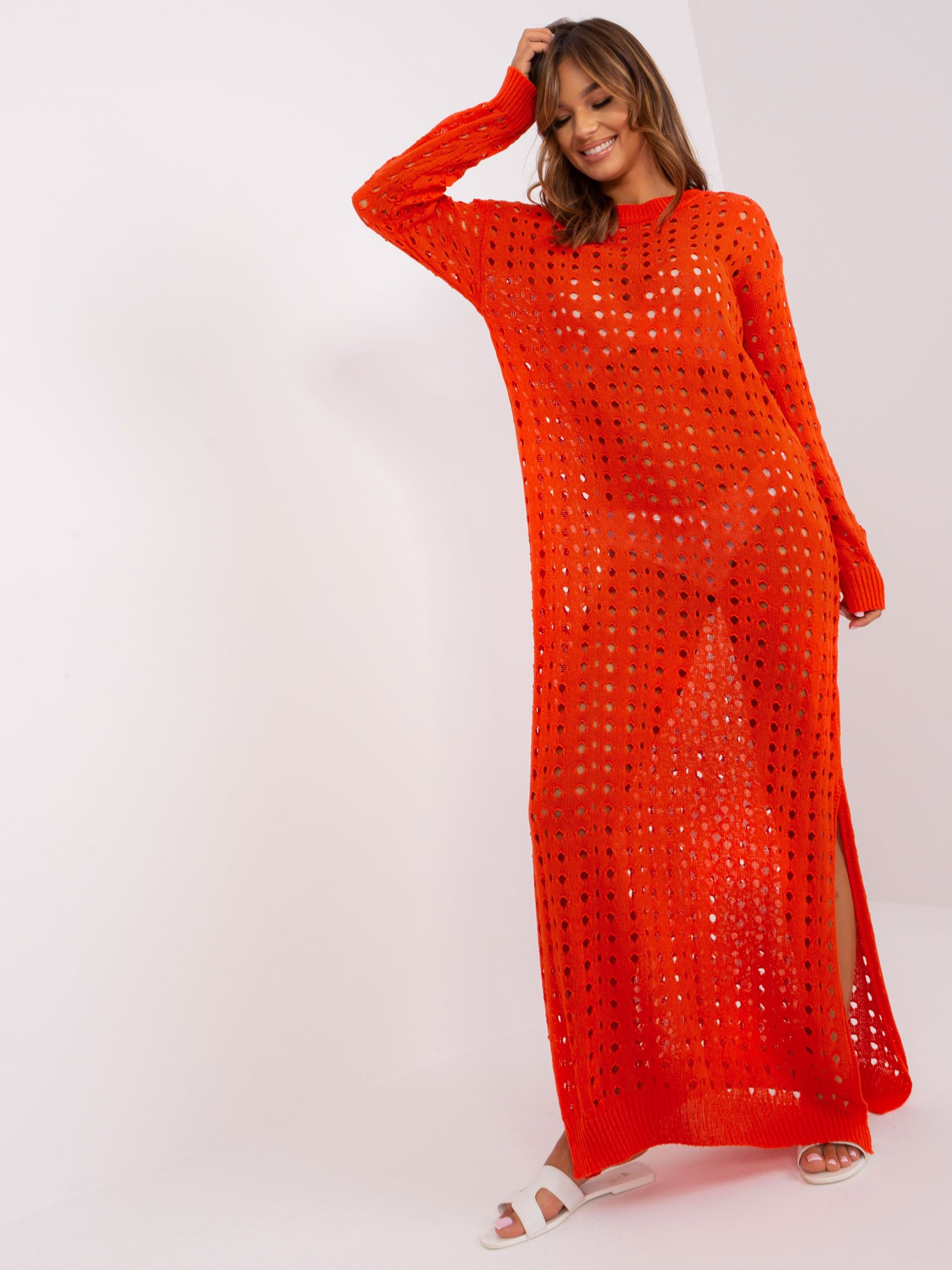 Pomarańczowa sukienka dzianinowa z długim rękawem
