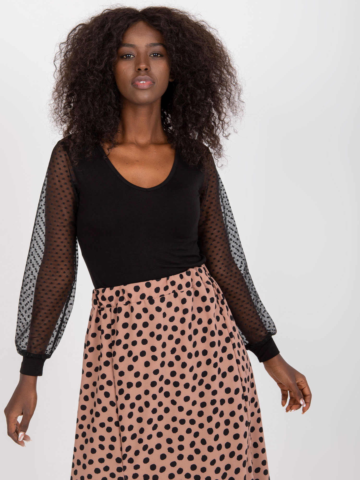 Modelka ma na sobie rozmiar one size. Wymiary modelki: wzrost 176 cm, biust 85 cm, talia 64 cm, biodra 92 cm.