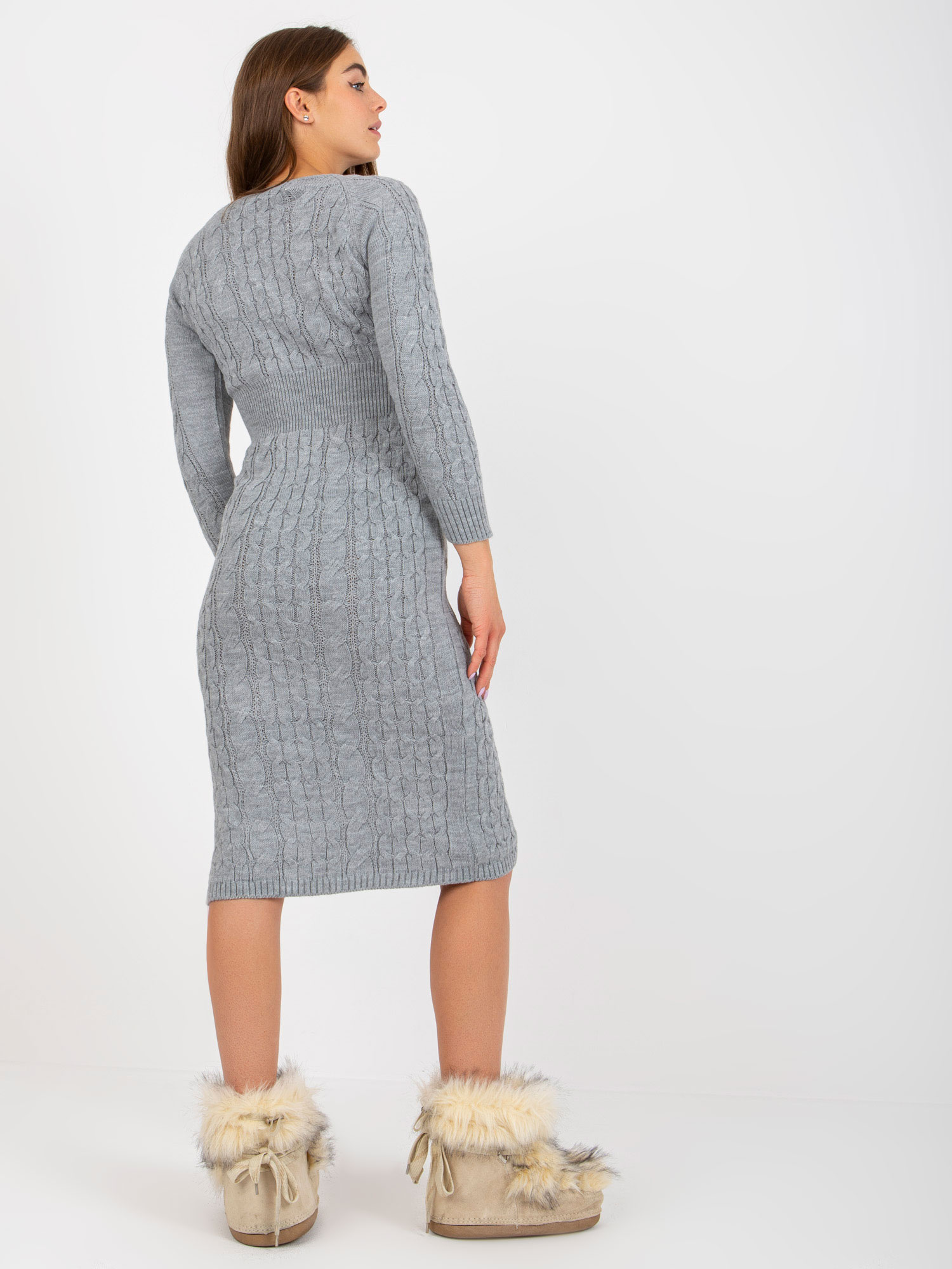 Szara midi sukienka dzianinowa w warkocze RUE PARIS .