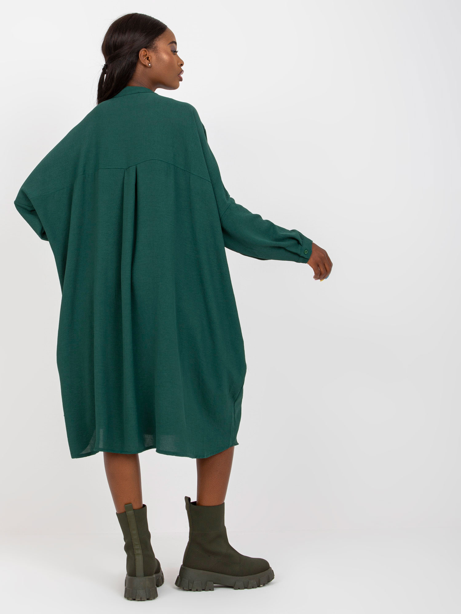 Ciemnozielona koszulowa sukienka oversize z kieszeniami .