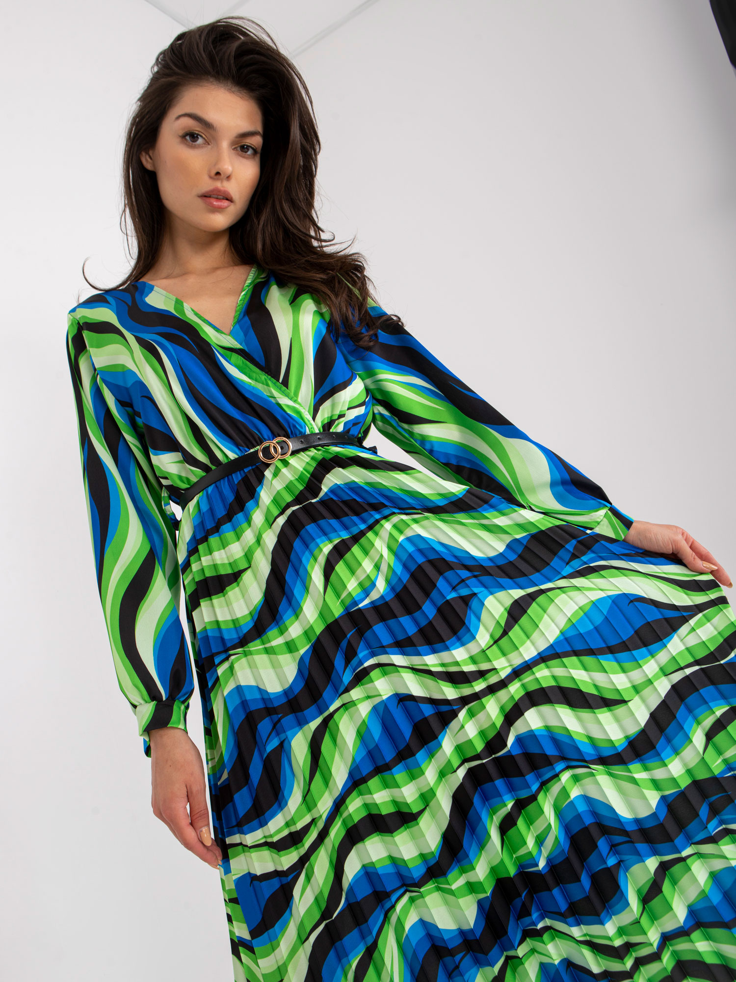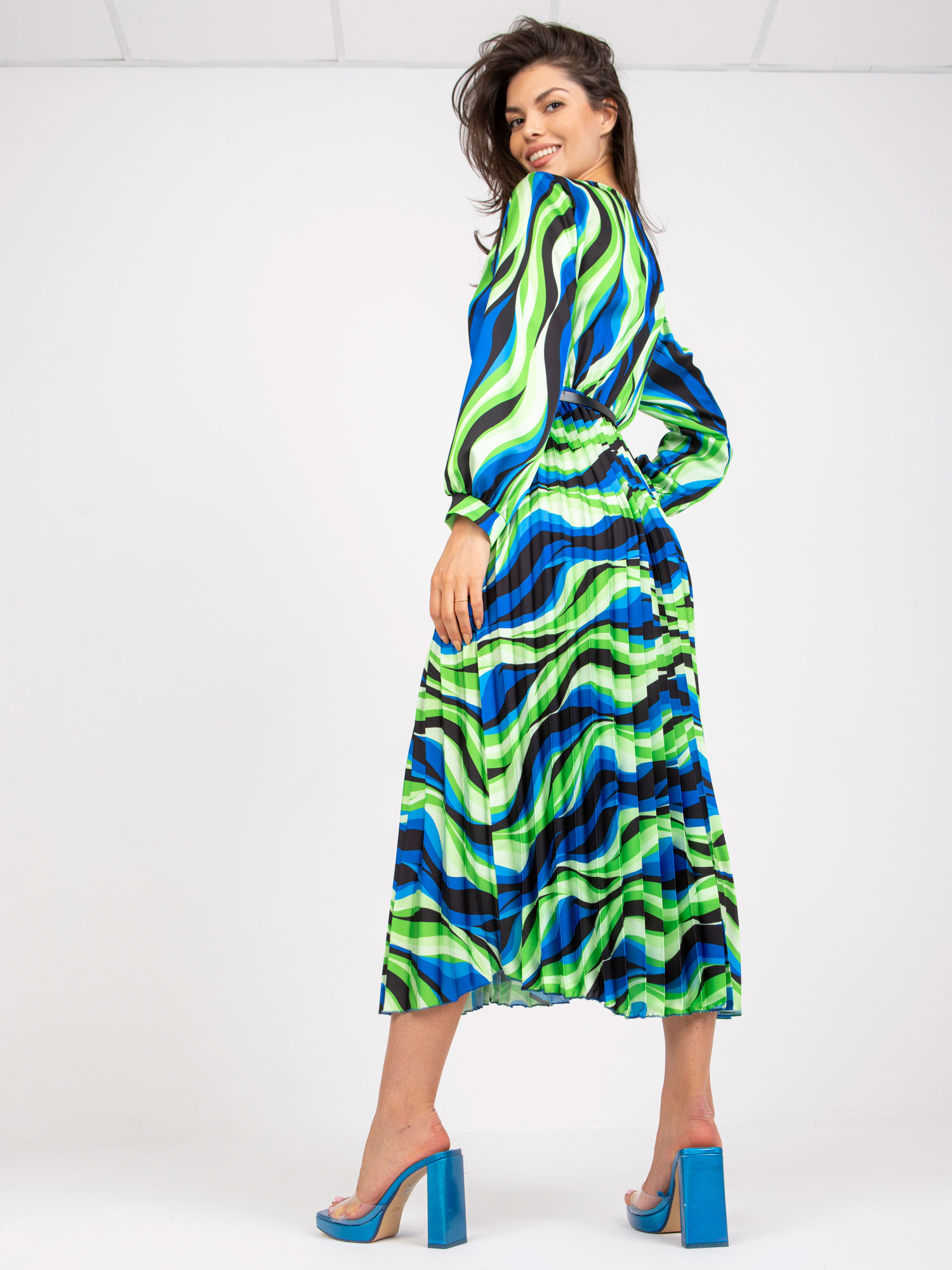 Wymiary sukienki w rozmiarze one size mierzone na płasko: szerokość pod pachami – 46 cm, długość rękawa – 52 cm, długość całkowita – 125 cm.