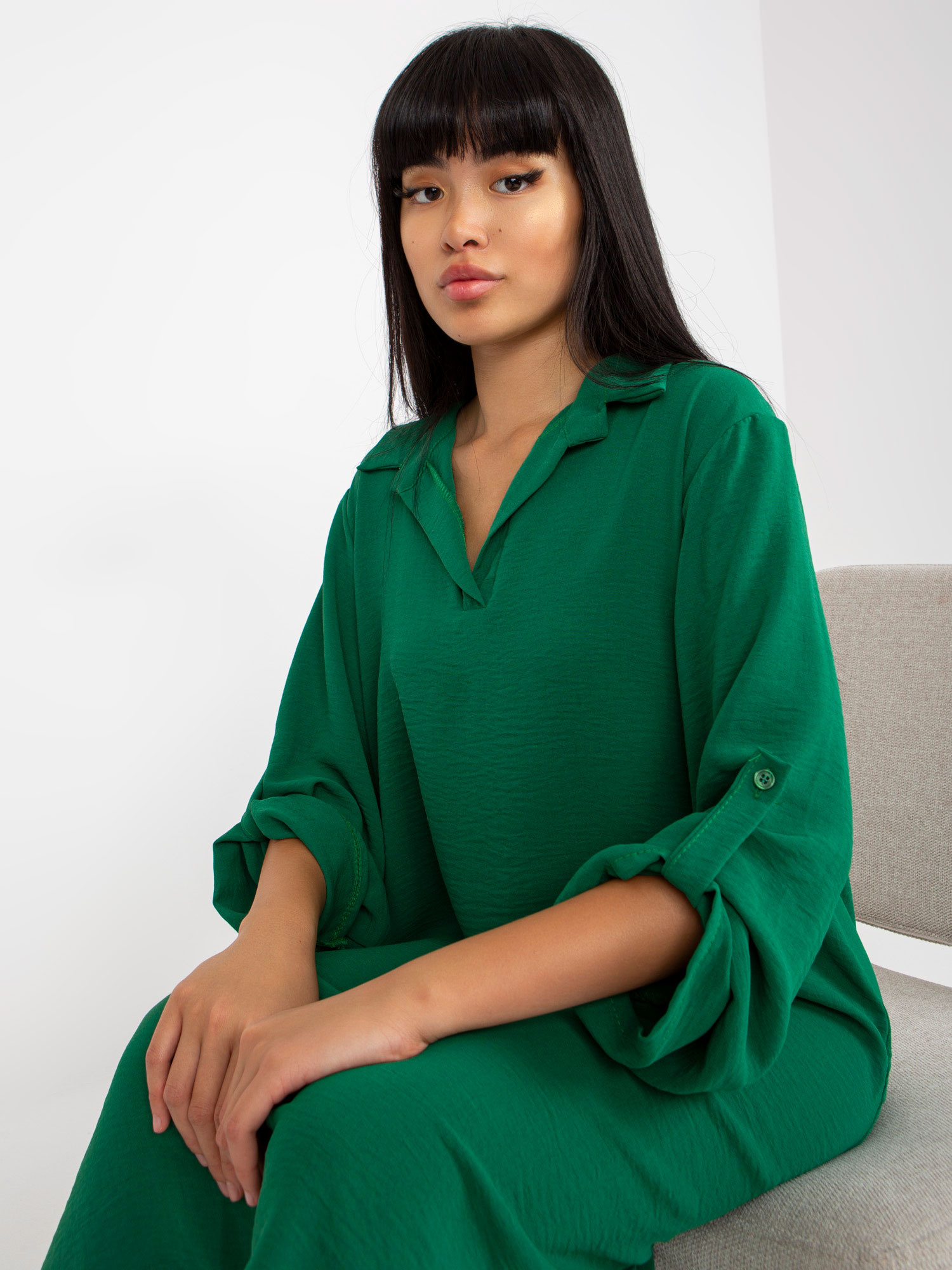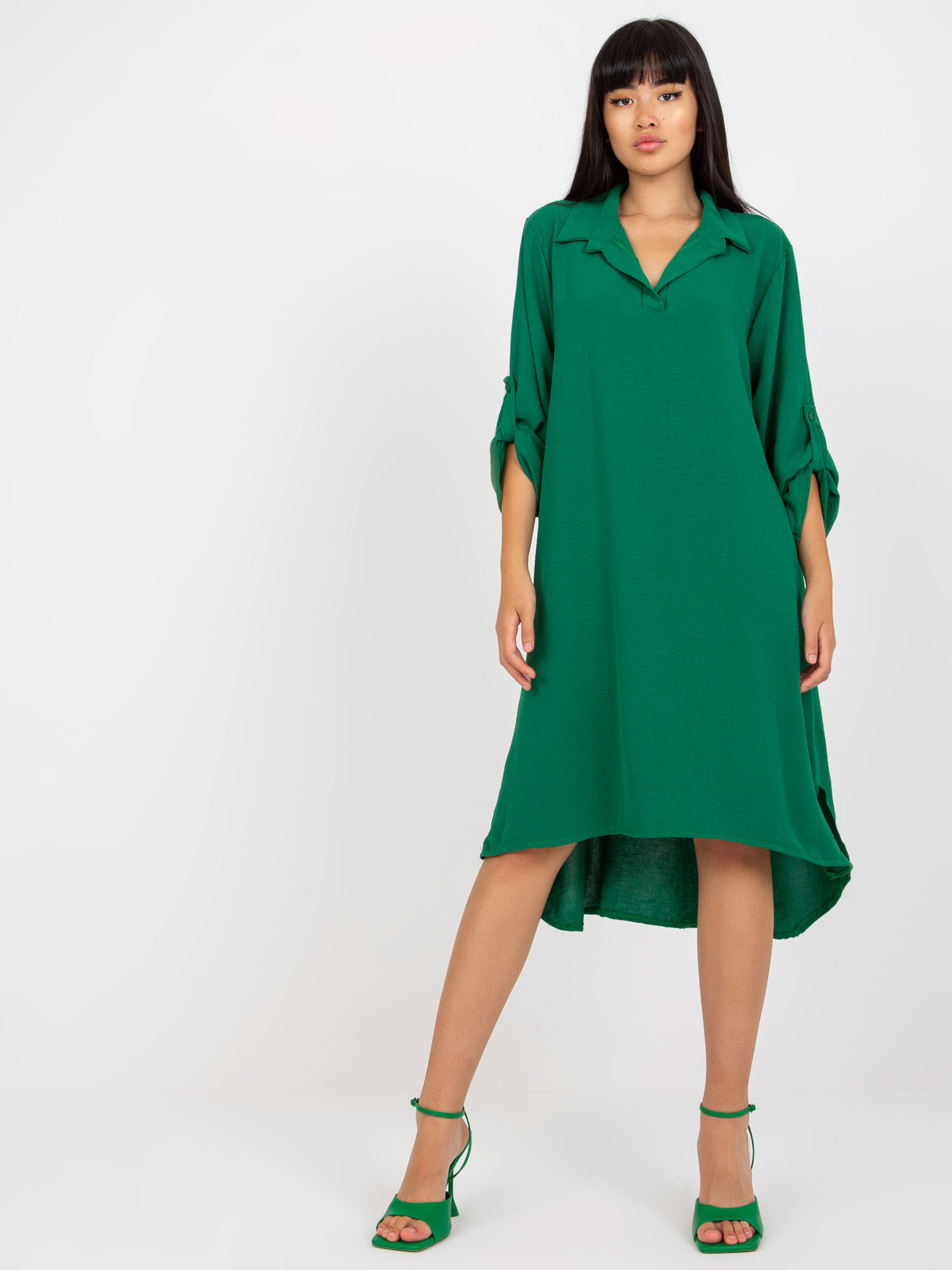 Zielona koszulowa sukienka one size z kołnierzykiem .