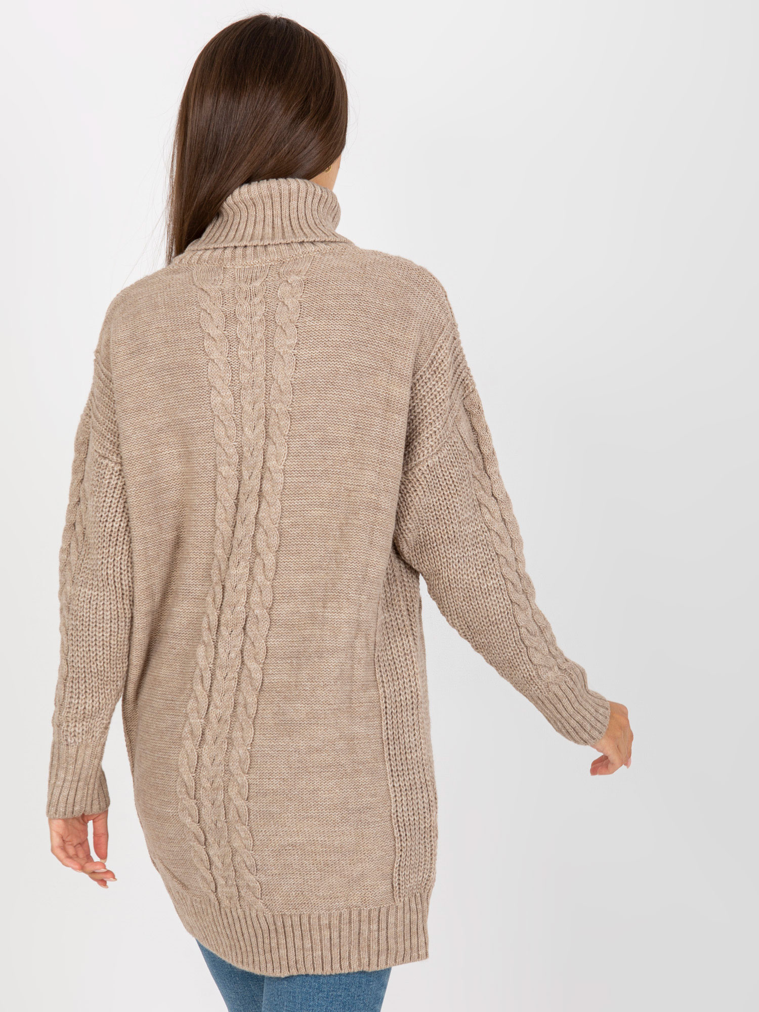 Beżowa mini sukienka dzianinowa w warkocze RUE PARIS .