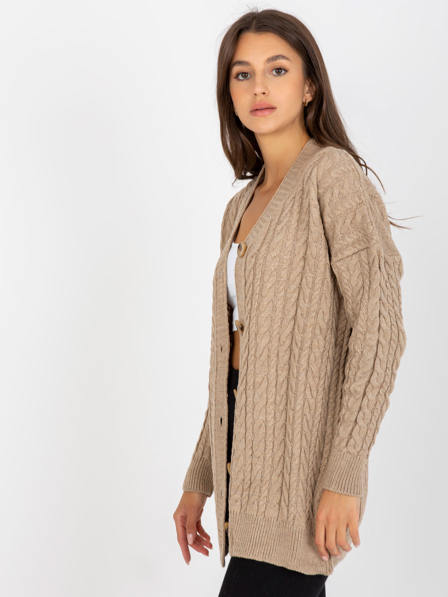 Beżowy sweter rozpinany z ozdobnymi guzikami RUE PARIS .
