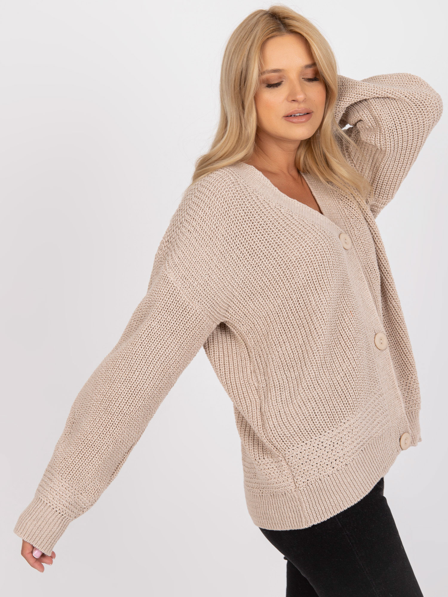 Wymiary swetra w rozmiarze one size mierzone na płasko: szerokość pod pachami – 62 cm, długość całkowita – 63 cm, długość rękawa – 67 cm.