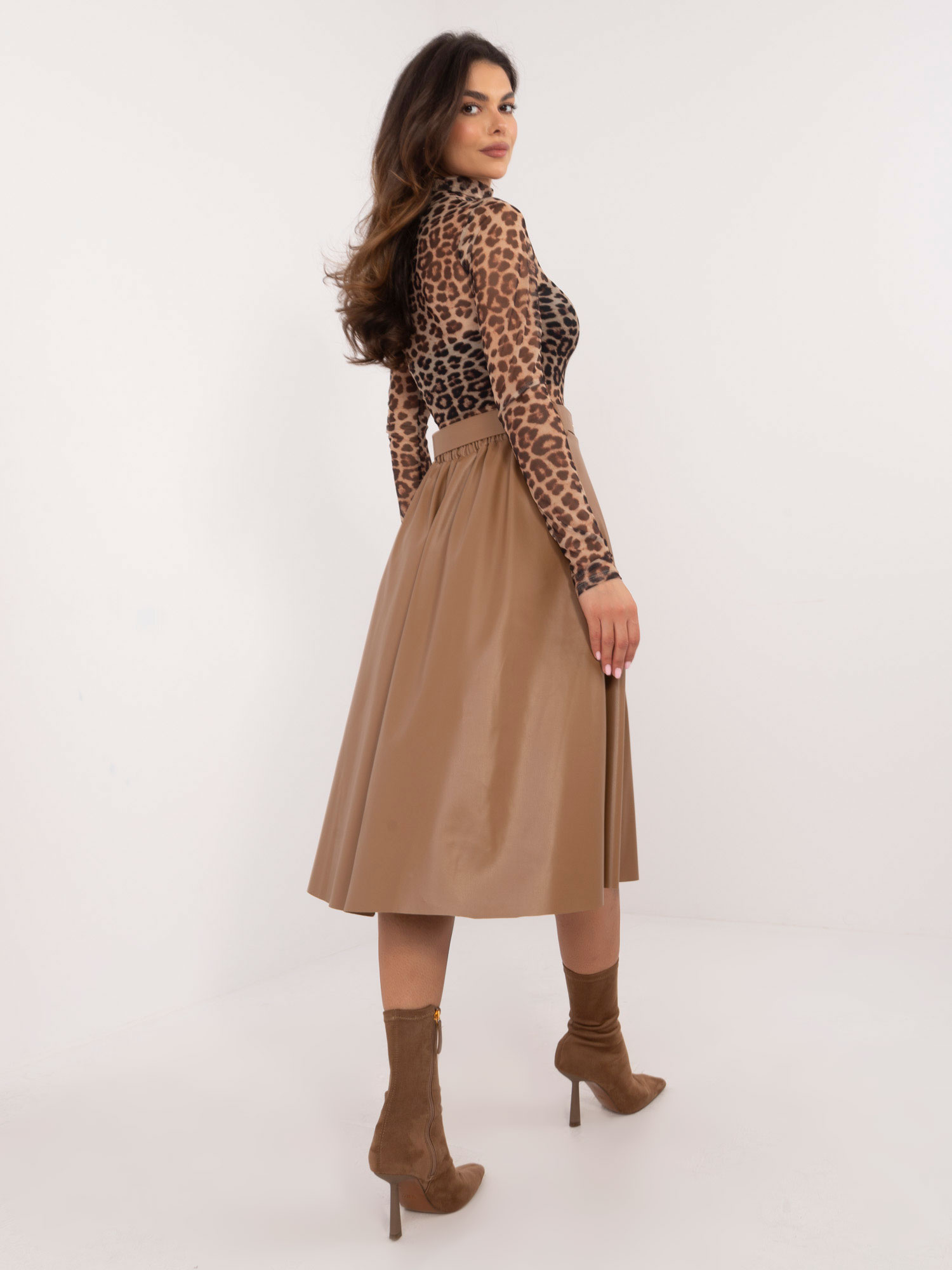 Modelka ma na sobie rozmiar one size. Wymiary modelki: wzrost 175,5 cm, biust 87 cm, talia 61 cm, biodra 90 cm.