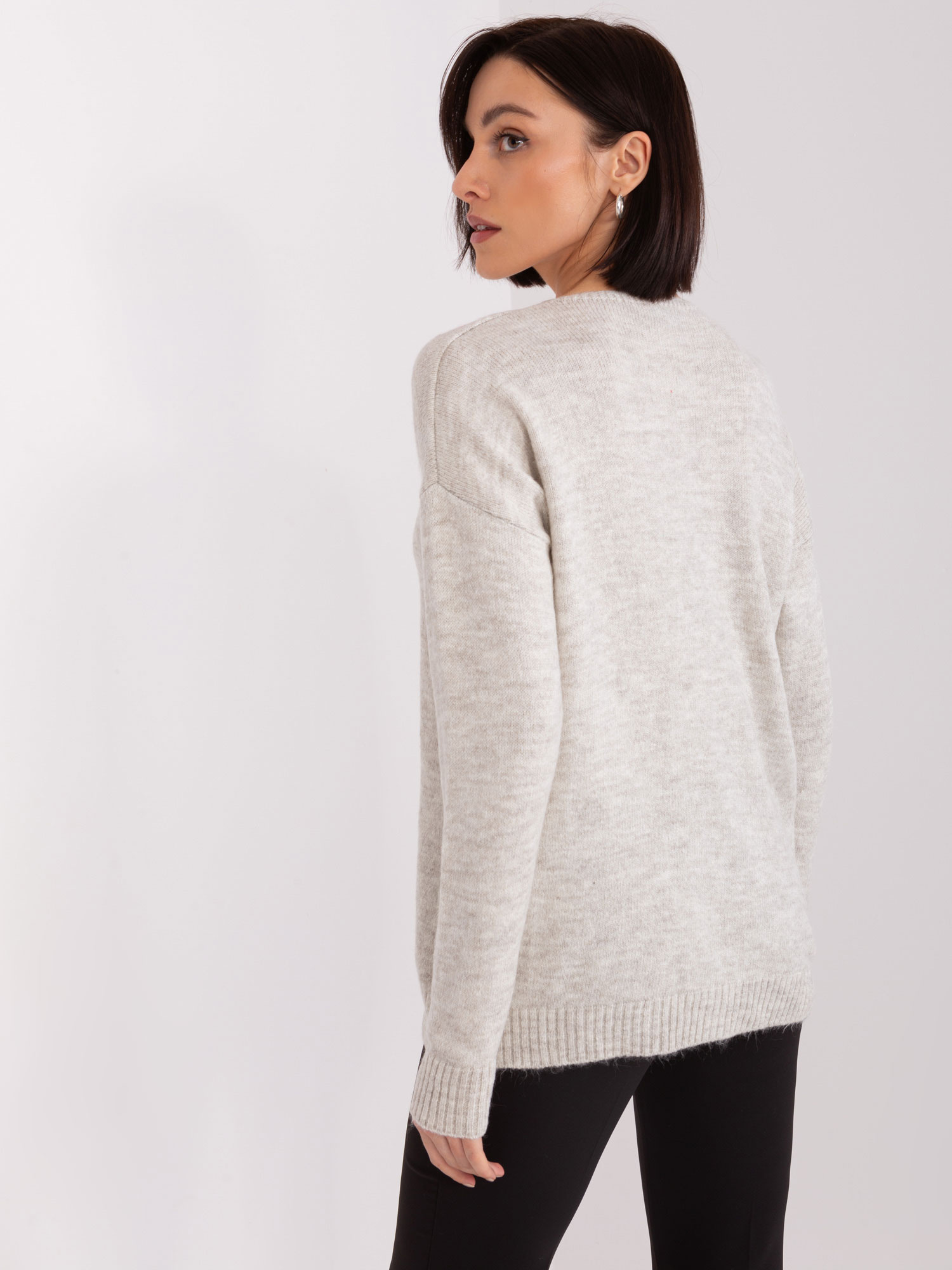Beżowy sweter damski o luźnym kroju RUE PARIS.