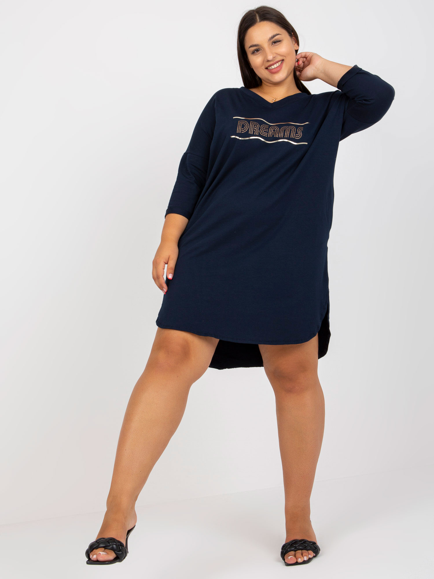 - Modelka: Modelka ma na sobie rozmiar S. Wymiary modelki: wzrost 173 cm, biust 89 cm, talia 65 cm, biodra 91 cm