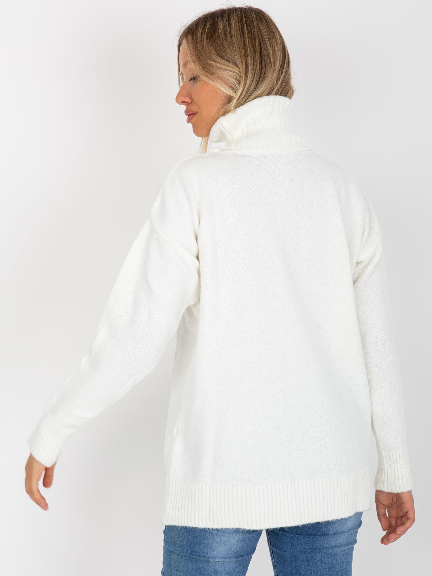 Biały gładki sweter z golfem o luźnym kroju RUE PARIS .