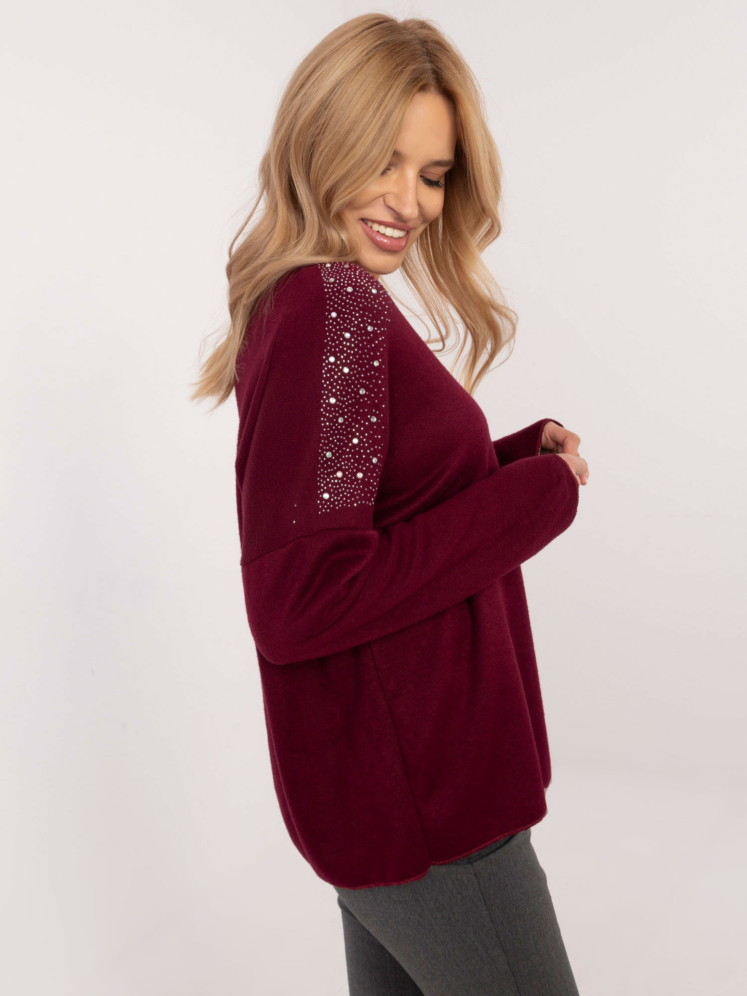 Wymiary swetra w rozmiarze one size: szerokość pod pachami – 68 cm, długość rękawa – 59 cm, długość całkowita – 61 cm.