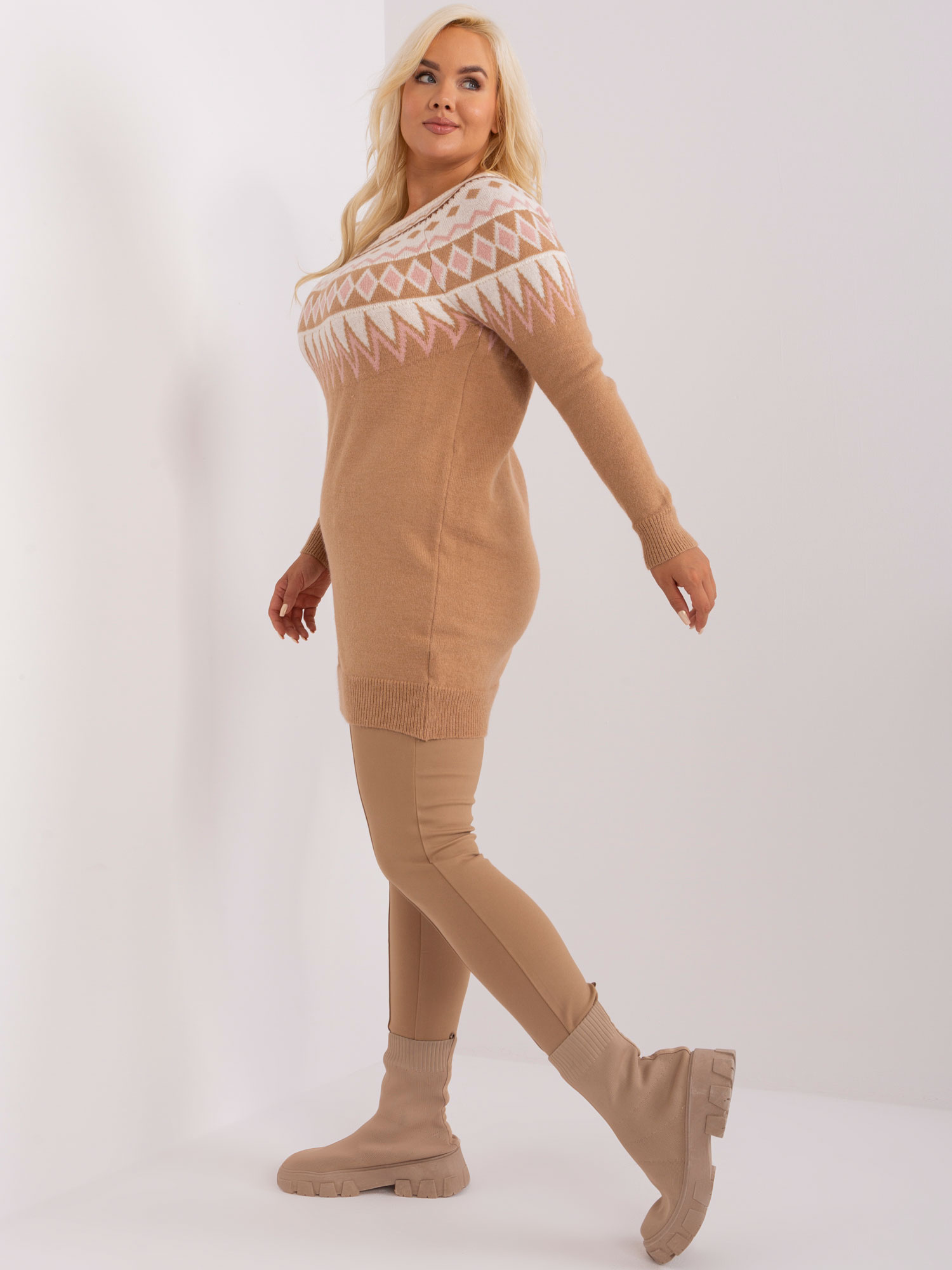 Wymiary swetra w rozmiarze L/XL mierzone na płasko: szerokość pod pachami – 60 cm, długość rękawa – 64 cm, długość całkowita – 87 cm.