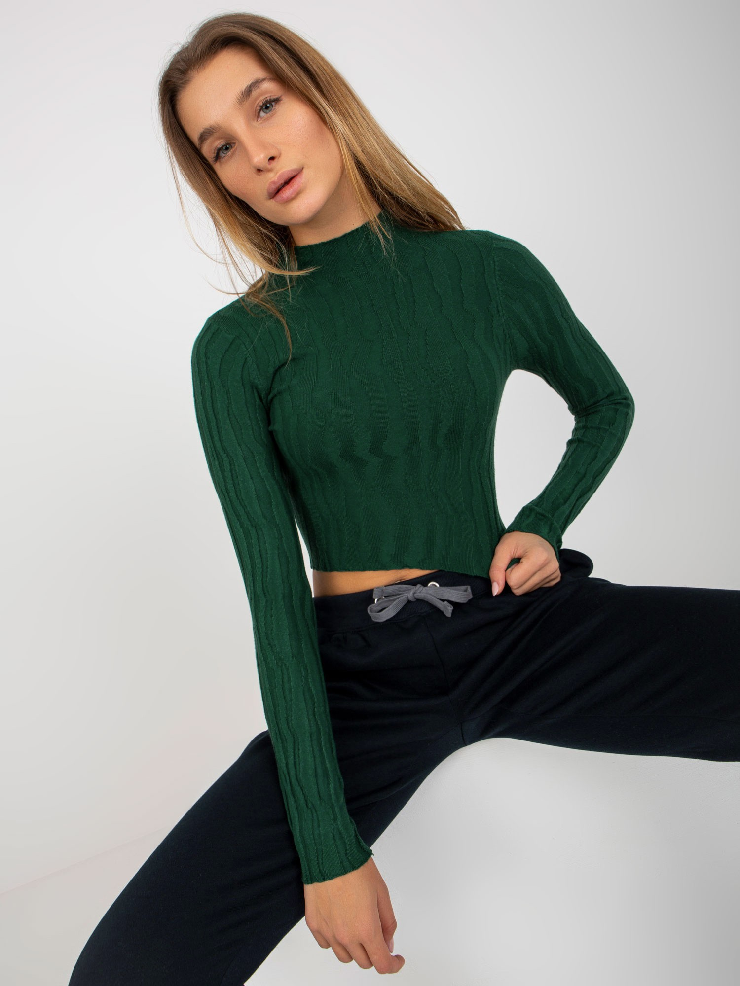 Ciemnozielony krótki sweter ze stójką .