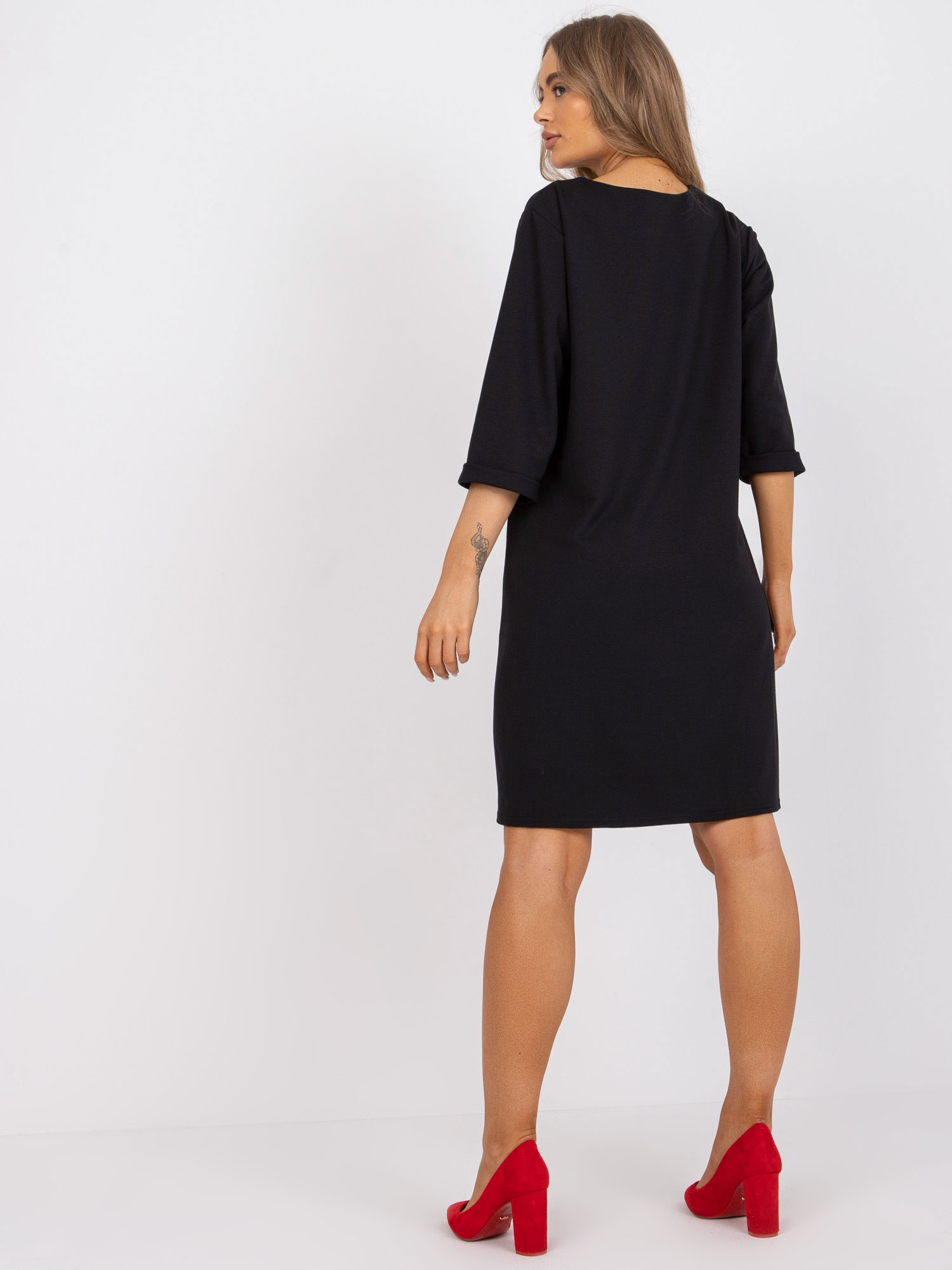 Modelka ma na sobie rozmiar one size. Wymiary modelki: wzrost 175 cm, biust 84 cm, talia 61 cm, biodra 91 cm.