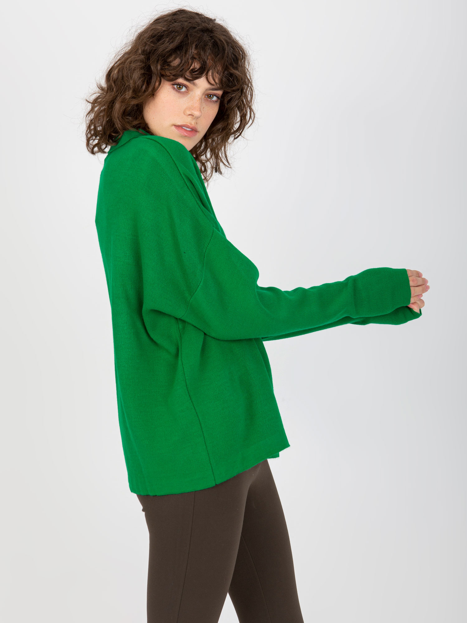 Wymiary swetra w rozmiarze one size mierzone na płasko: szerokość pod pachami – 42 cm, długość całkowita – 62 cm, długość rękawa – 61 cm.
