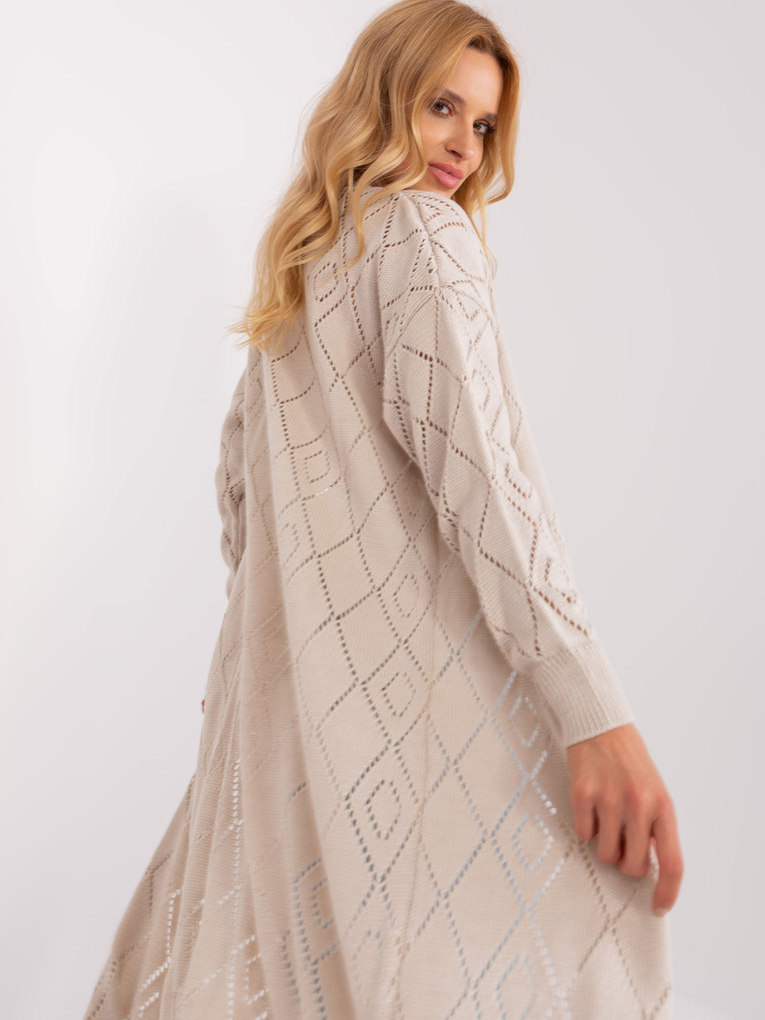 Wymiary swetra w rozmiarze one size mierzone na płasko: szerokość pod pachami – 52 cm, długość rękawa – 62 cm, długość całkowita – 75 cm.