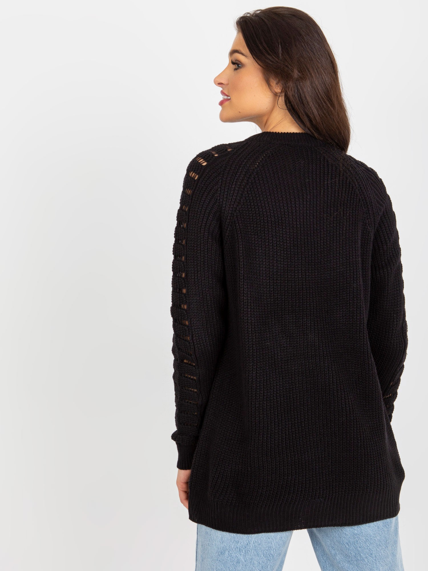 Czarny ażurowy sweter oversize z okrągłym dekoltem .