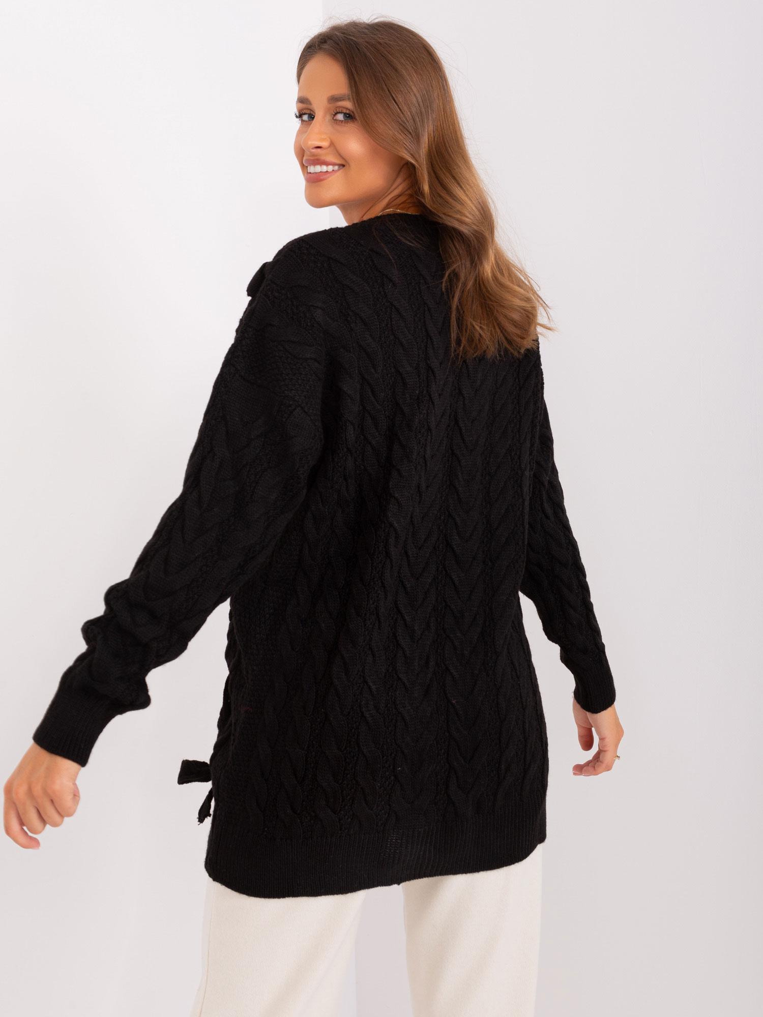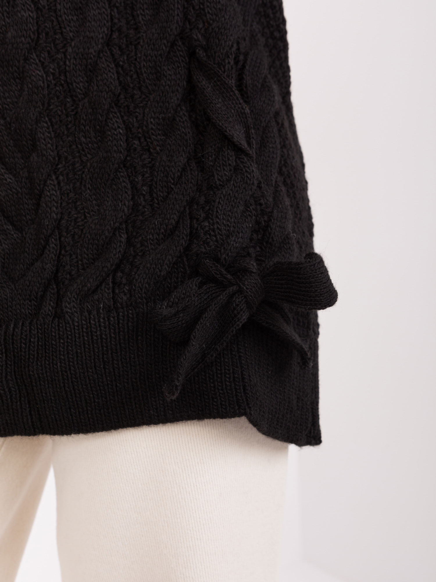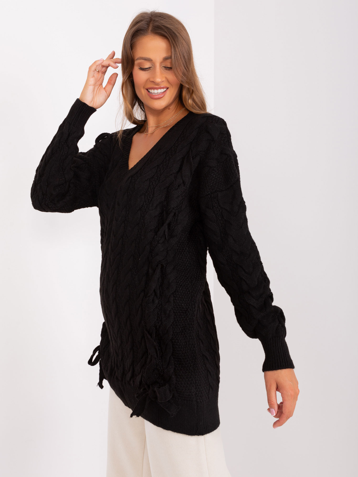 Wymiary swetra w rozmiarze one size mierzone na płasko: szerokość pod pachami – 75 cm, długość rękawa – 64 cm, długość całkowita – 81 cm