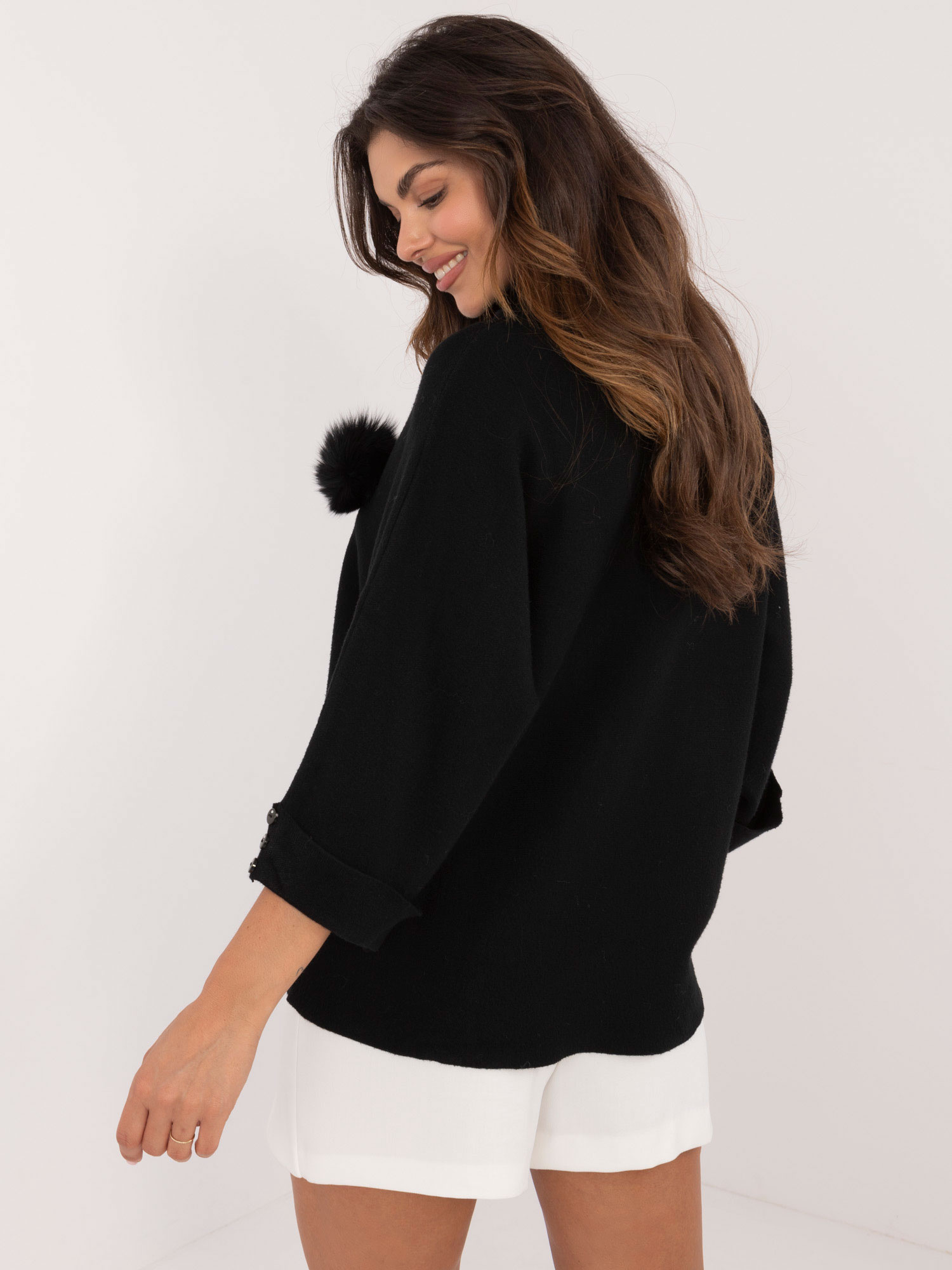 Wymiary swetra w rozmiarze S/M mierzone na płasko: szerokość pod pachami – 70 cm, długość rękawa – 45 cm, długość całkowita – 63 cm.