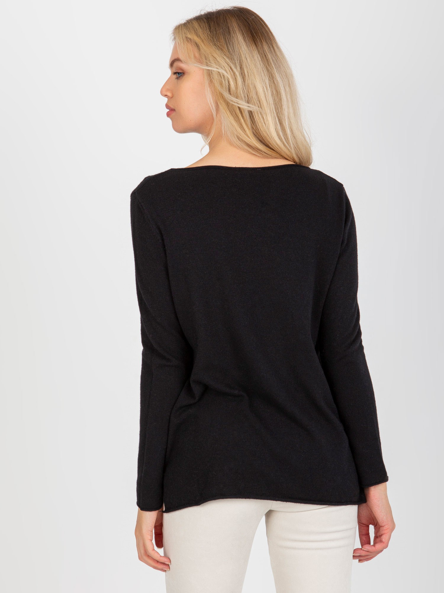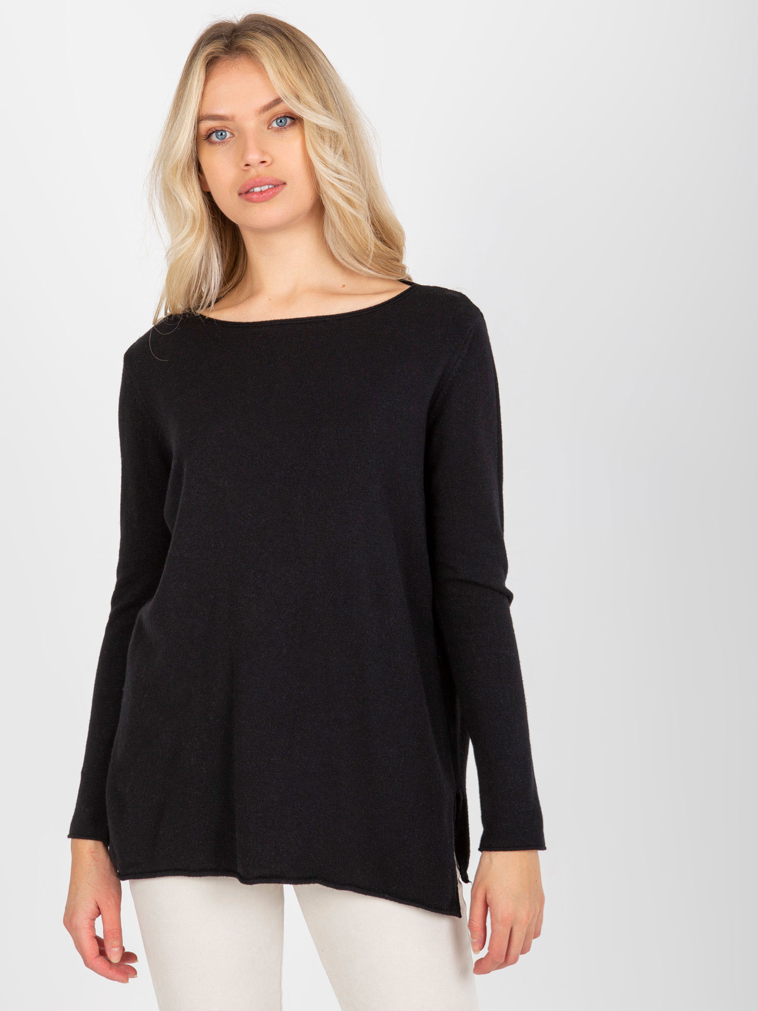 Wymiary swetra w rozmiarze one size mierzone na płasko: szerokość pod pachami – 47 cm, długość rękawa – 56 cm, długość całkowita – 65 cm.