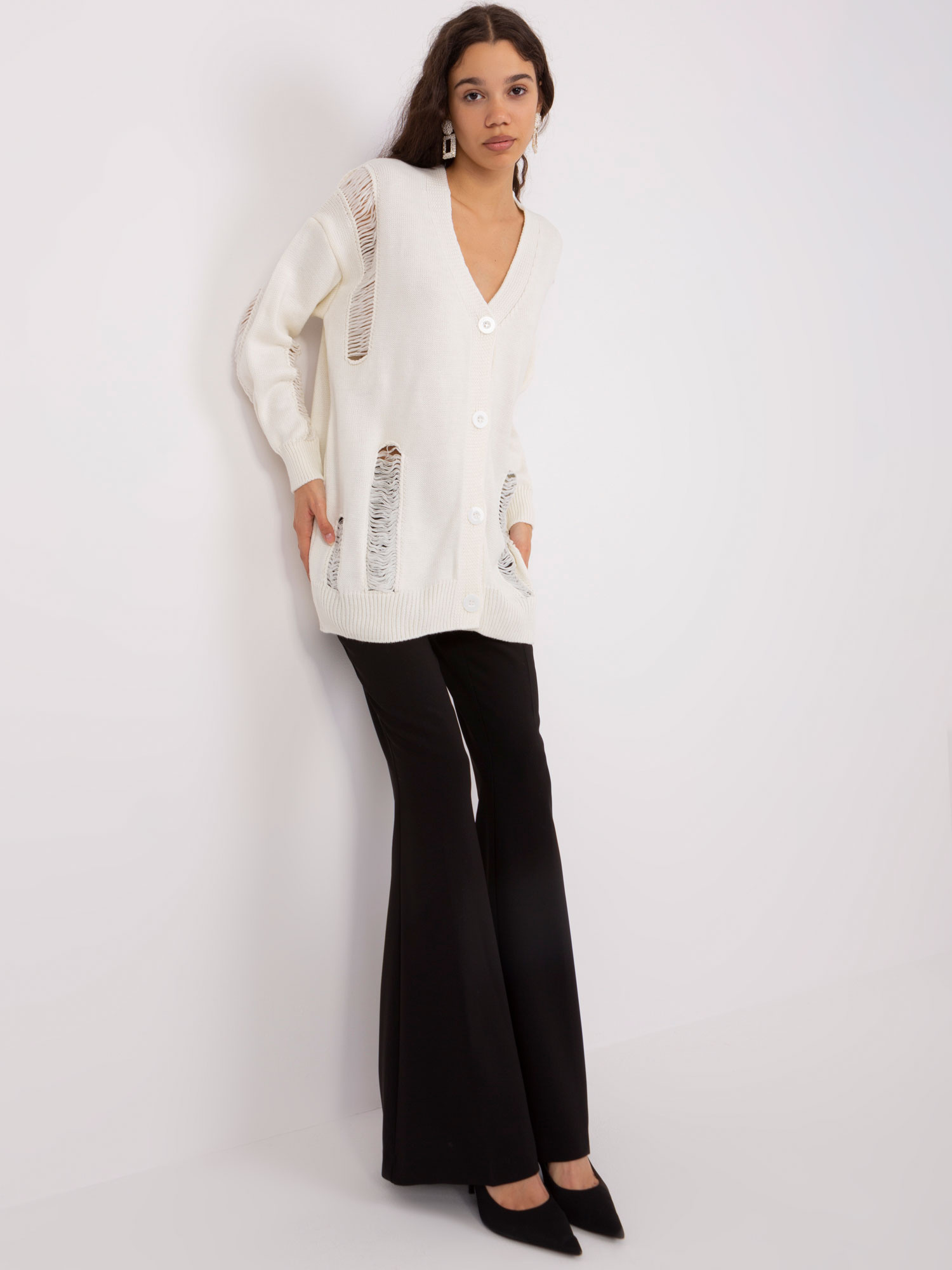 Ecru damski sweter rozpinany o kroju oversize .