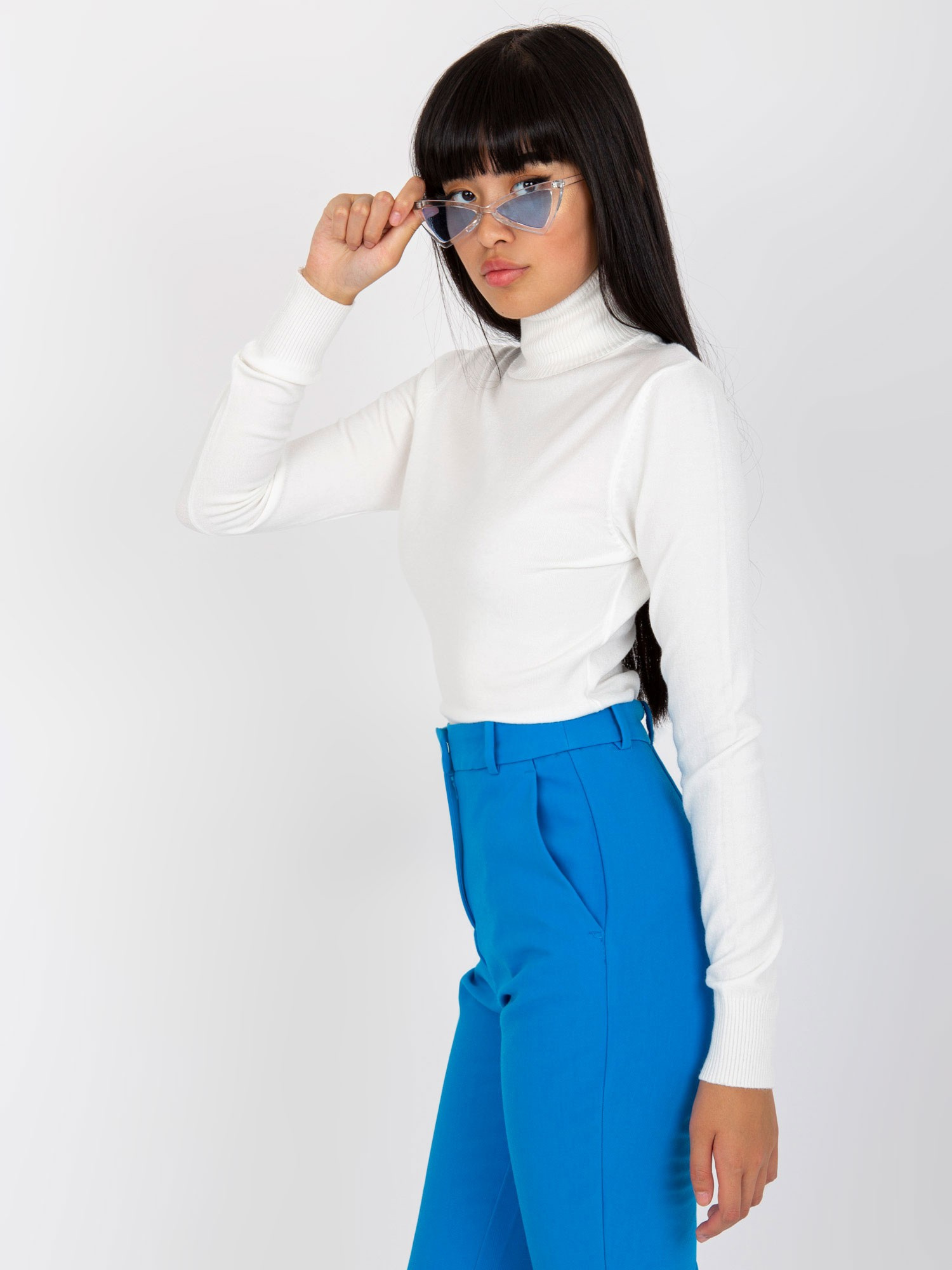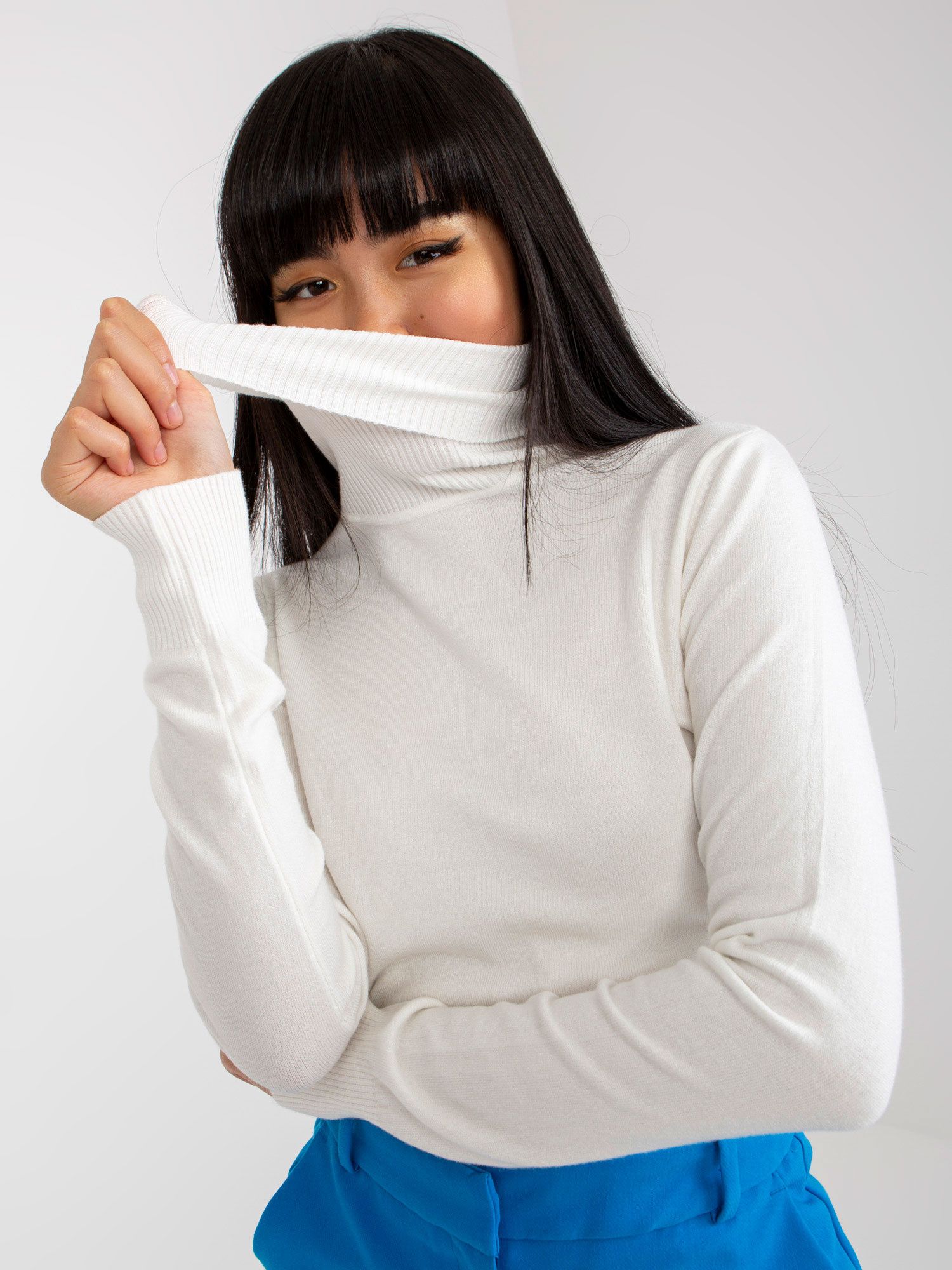 Ecru gładki sweter z golfem z wiskozą .