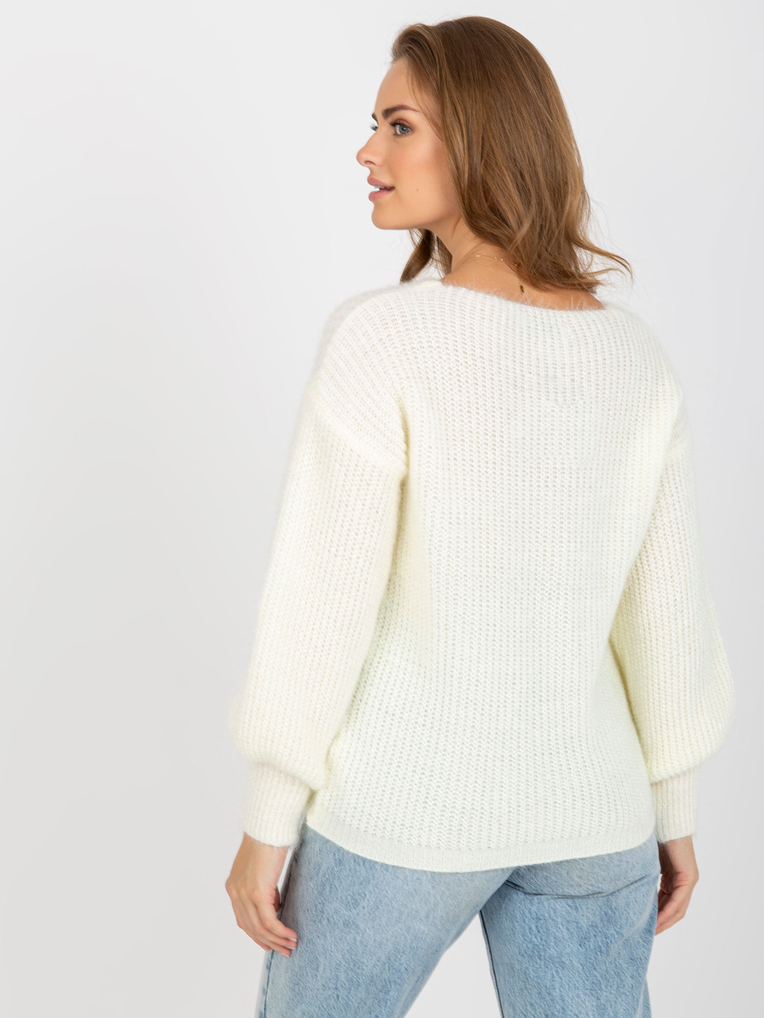 Ecru fluffy sweter klasyczny z szerokimi rękawami OCH BELLA .