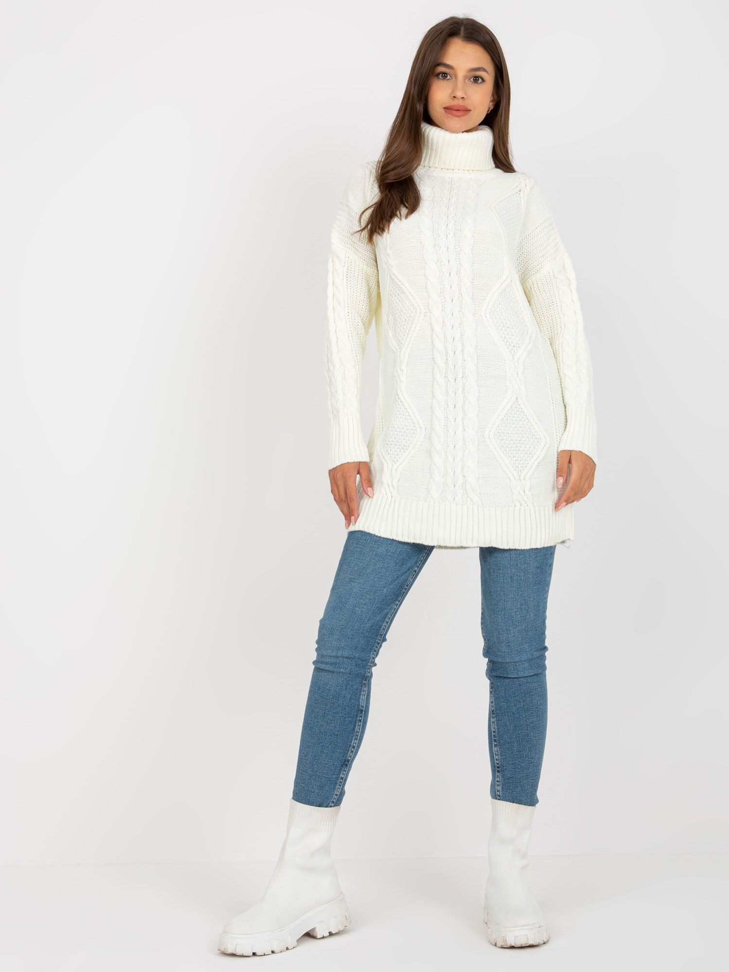Ecru mini sukienka dzianinowa w warkocze RUE PARIS .