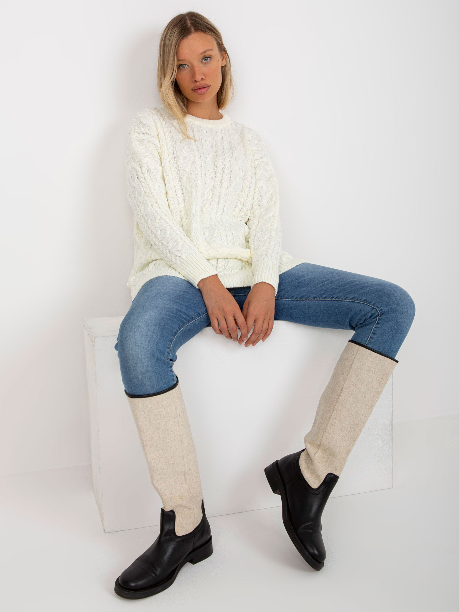 Ecru sweter z warkoczami o luźnym kroju RUE PARIS .