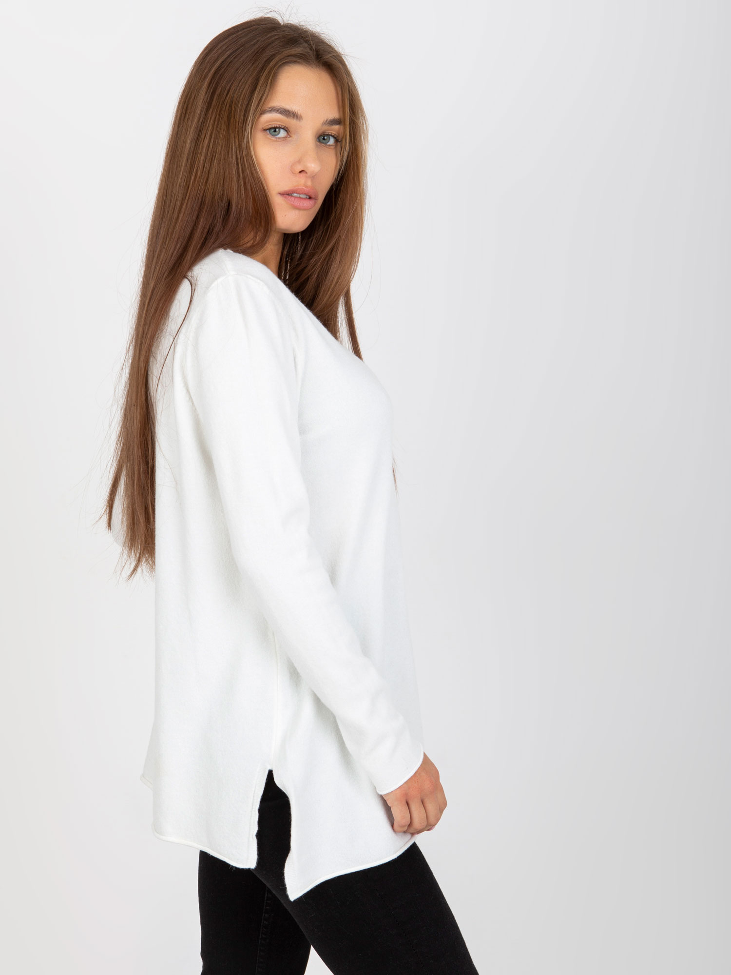 Ecru gładki sweter klasyczny z okrągłym dekoltem .