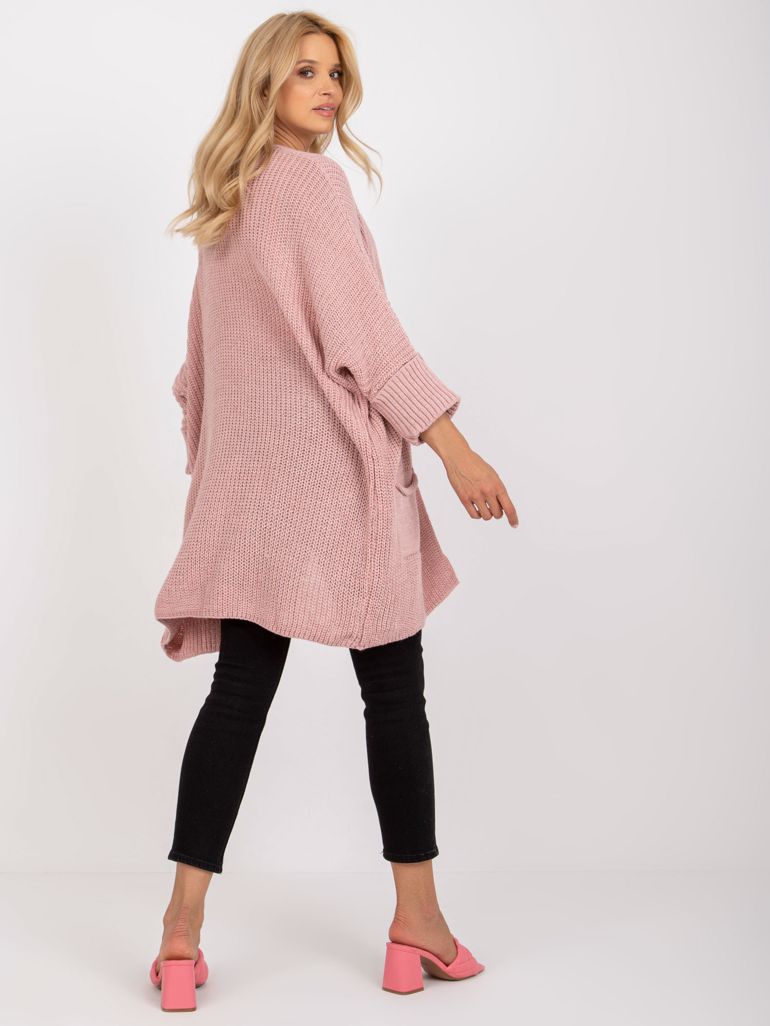 Wymiary swetra w rozmiarze S/M mierzone na płasko: szerokość pod pachami – 55 cm, długość rękawa – 64 cm, długość całkowita – 65 cm.