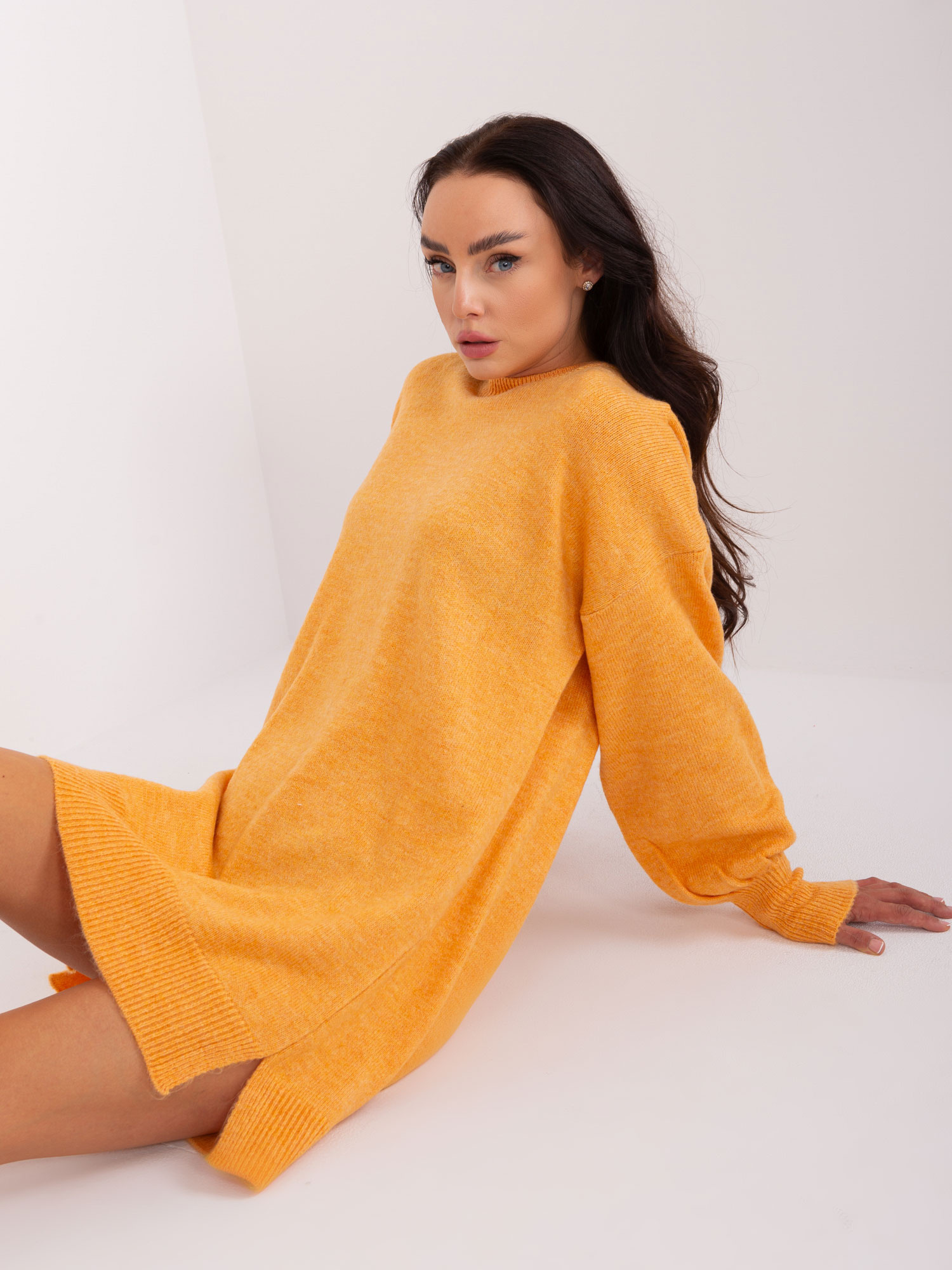 Jasnopomarańczowy dzianinowy sweter damski oversize .