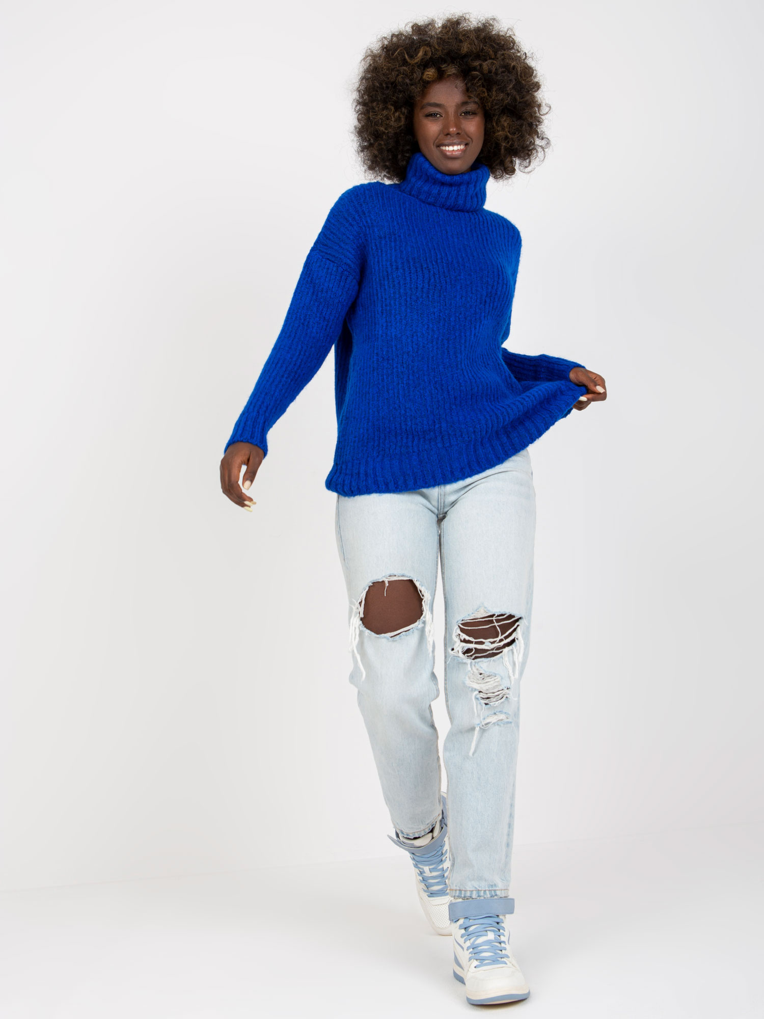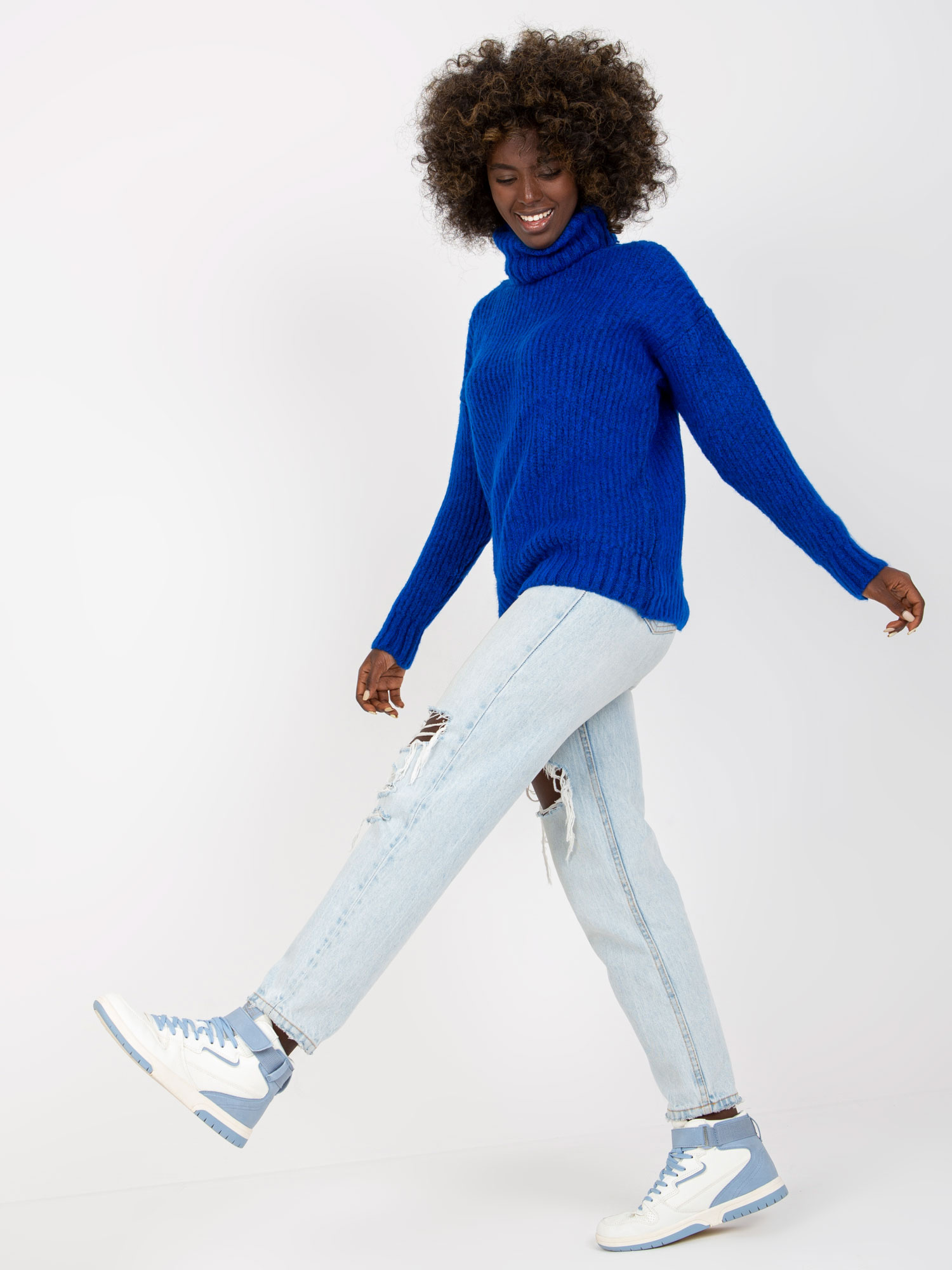 Kobaltowy luźny sweter z golfem Neva RUE PARIS .