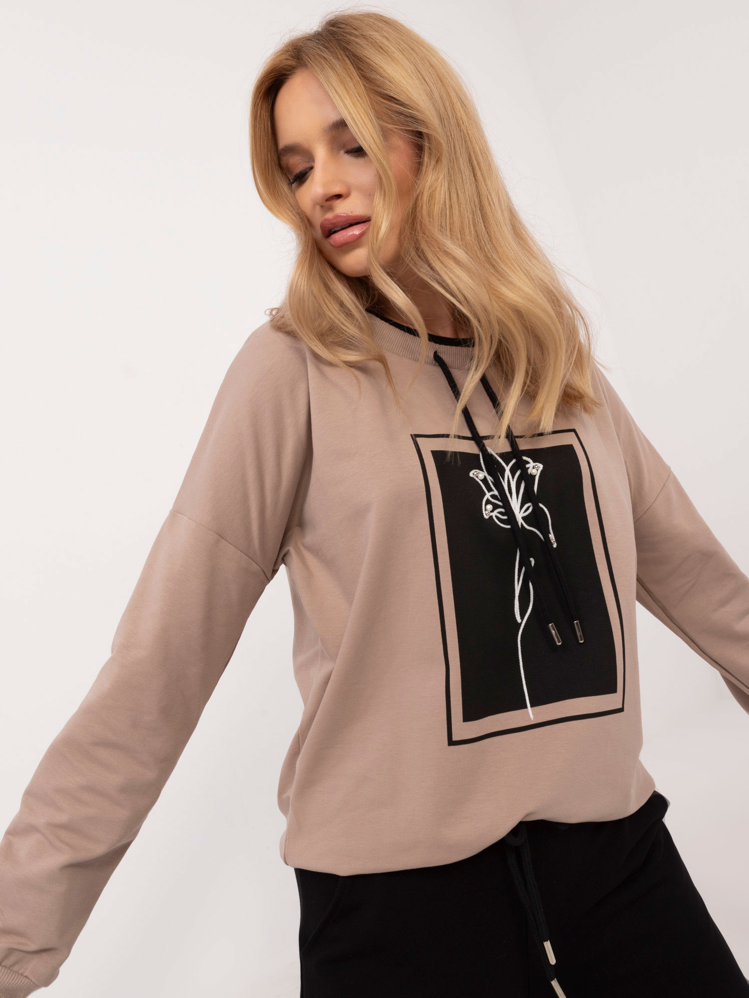 Wymiary swetra w rozmiarze one size mierzone na płasko: szerokość pod pachami – 51 cm, długość rękawa – 54 cm, długość swetra – 57 cm