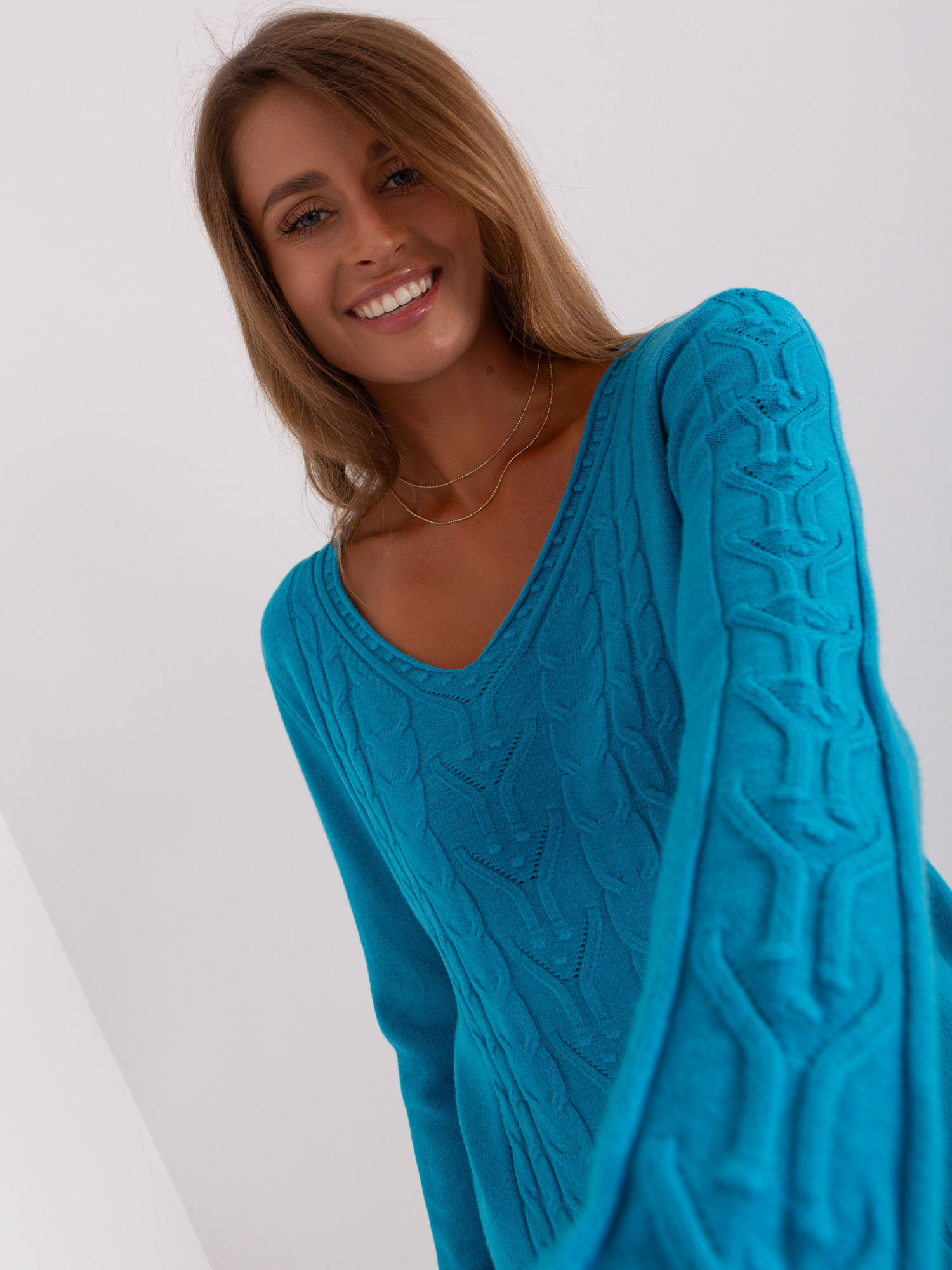 Wymiary swetra w rozmiarze one size mierzone na płasko: szerokość pod pachami – 59 cm, długość całkowita – 62 cm, długość rękawa – 59 cm.