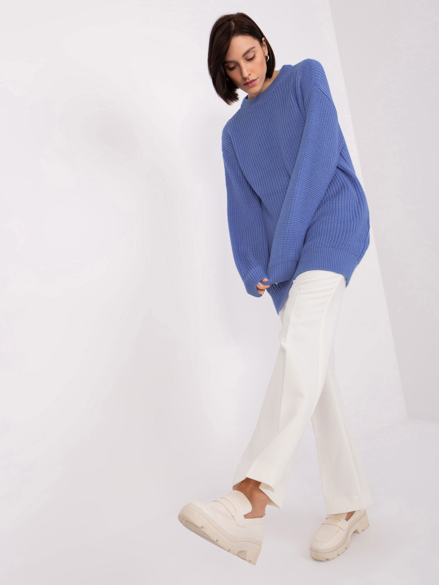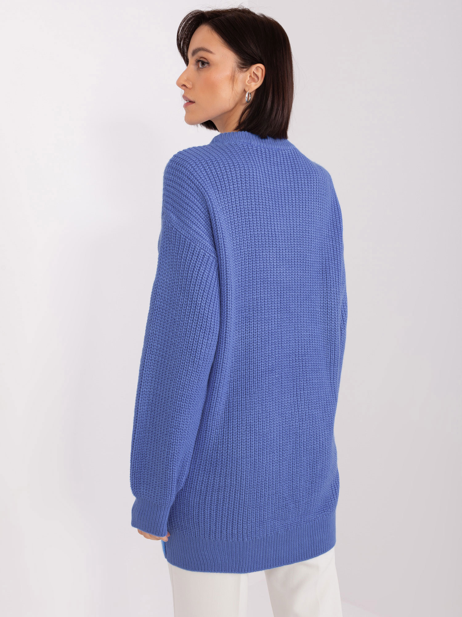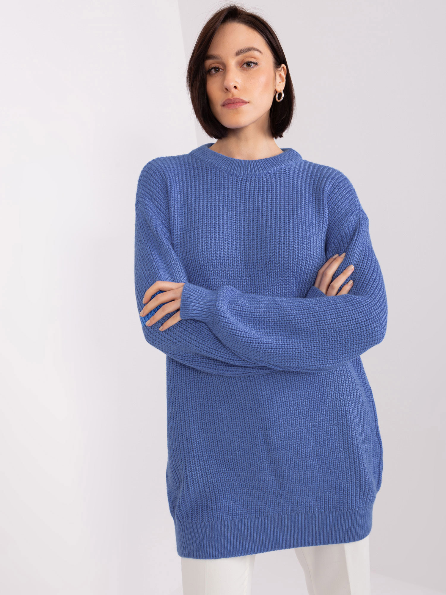 Niebieski sweter oversize z okrągłym dekoltem
