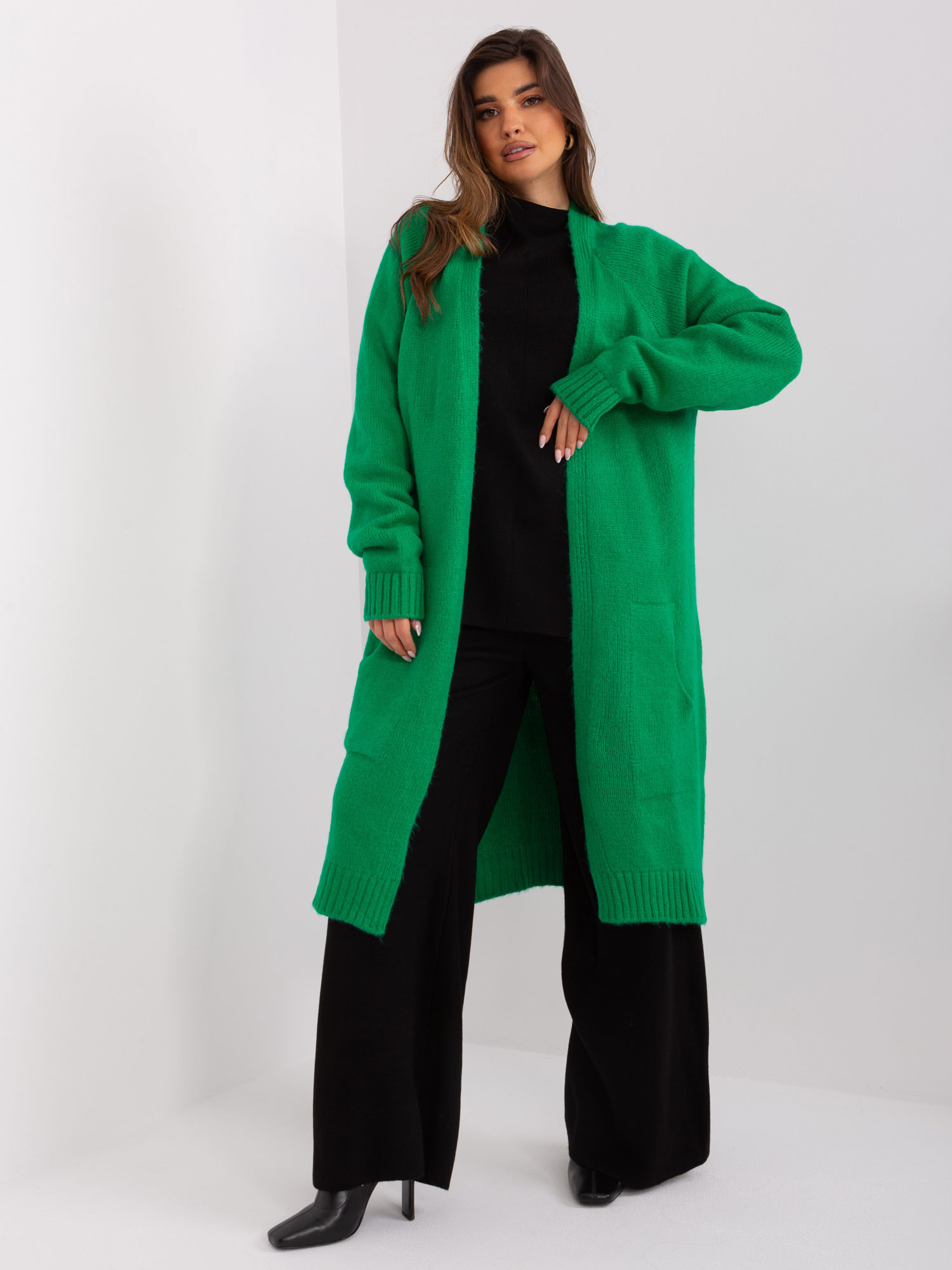 Wymiary swetra w rozmiarze one size mierzone na płasko: szerokość pod pachami – 65 cm, długość całkowita – 67 cm, długość rękawa – 56 cm.