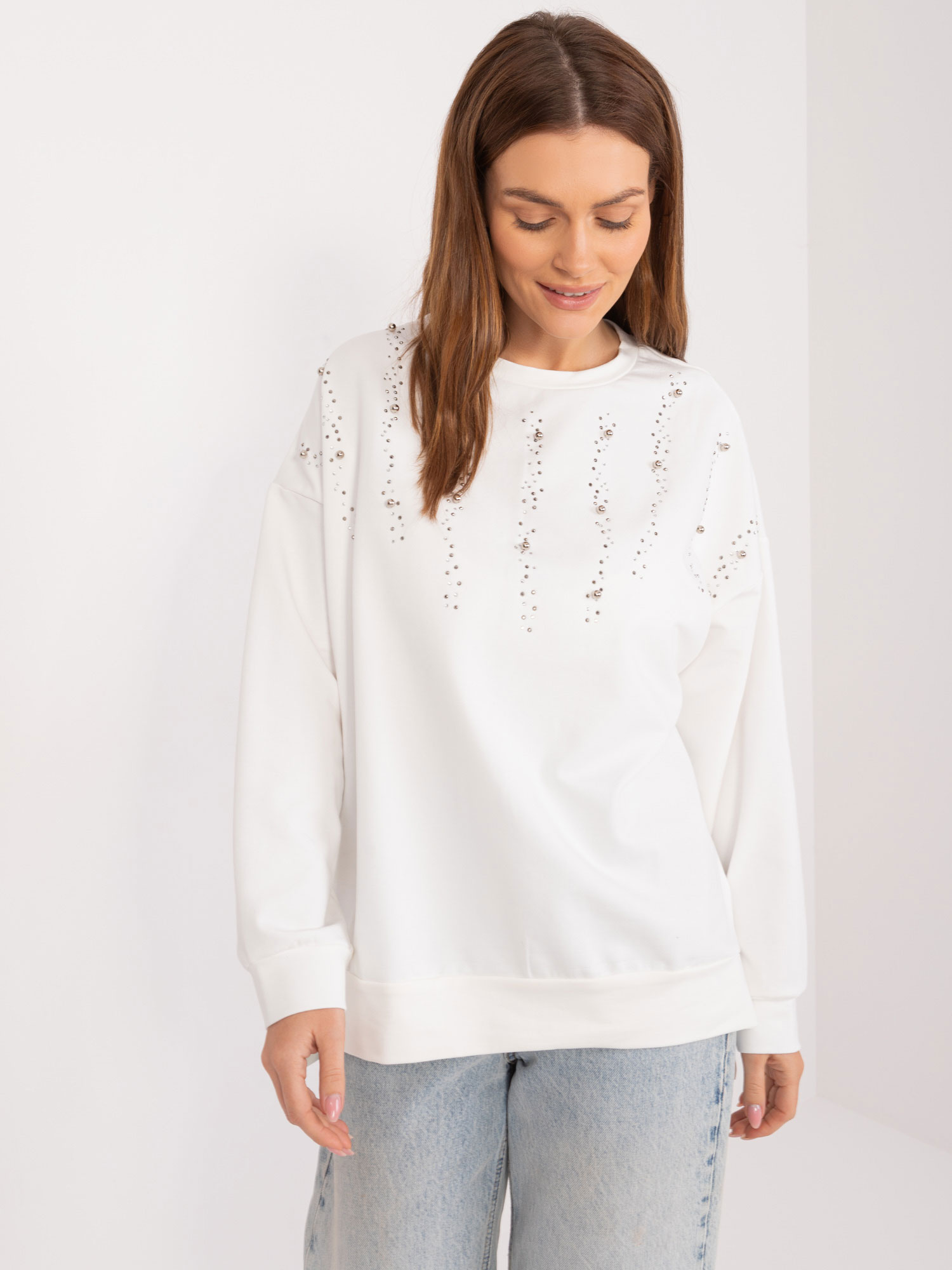 Wymiary swetra w rozmiarze one size: szerokość pod pachami – 68 cm, długość rękawa – 59 cm, długość całkowita – 61 cm.