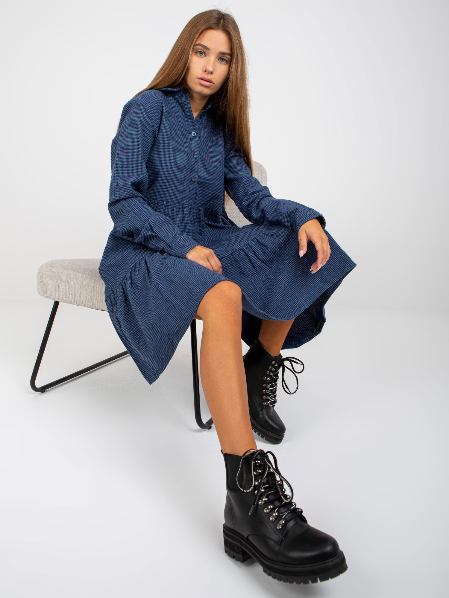 Modelka ma na sobie rozmiar one size. Wymiary modelki: wzrost 170 cm, biust 93 cm, talia 66 cm, biodra 93 cm.