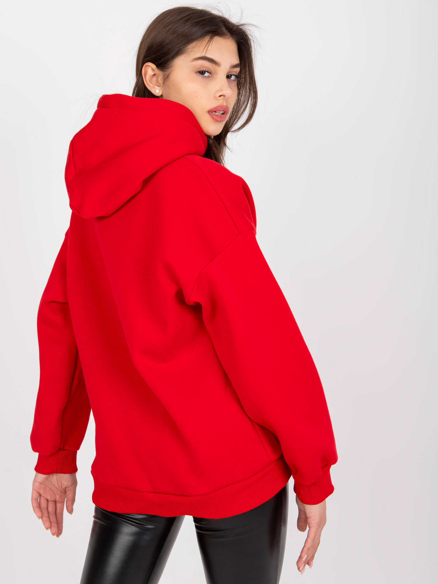 Wymiary swetra w rozmiarze one size mierzone na płasko: szerokość pod pachami – 48 cm, długość rękawa – 61 cm, długość całkowita – 63 cm.