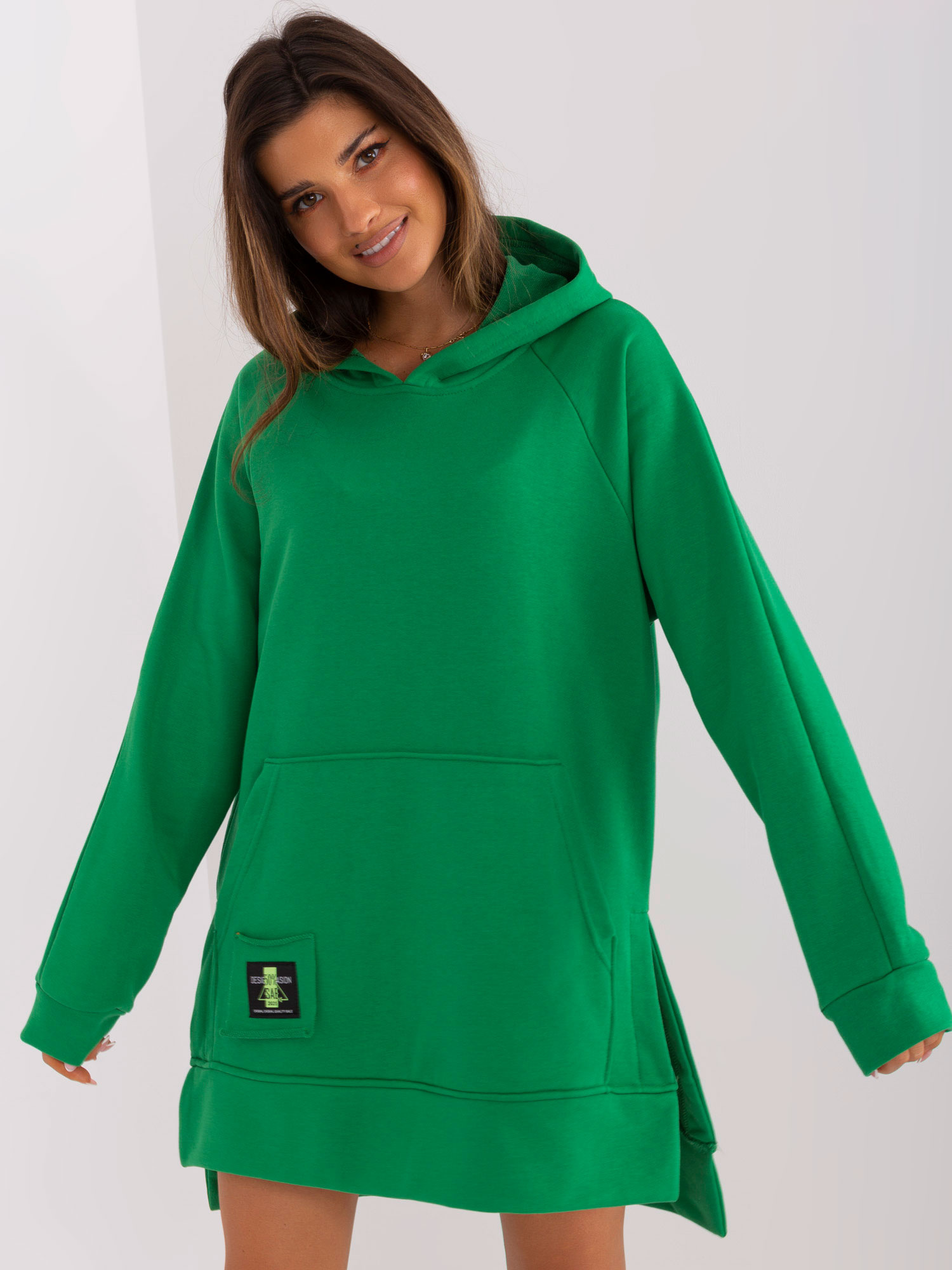 - Modelka: Modelka ma na sobie rozmiar one size. Wymiary modelki: wzrost 176 cm, biust 85 cm, talia 64 cm, biodra 92 cm