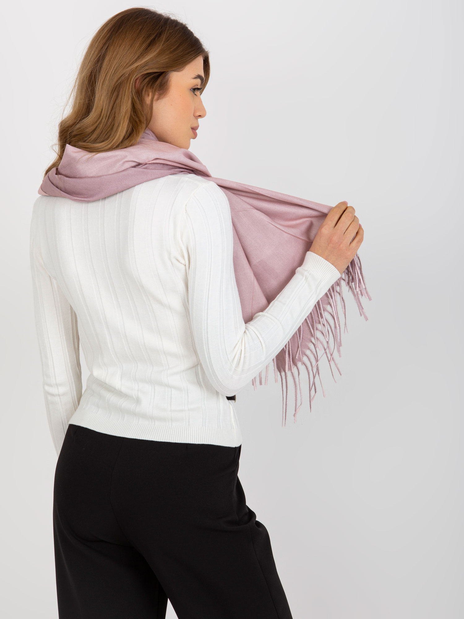 Brudnoróżowy gładki szal damski z wiskozą .