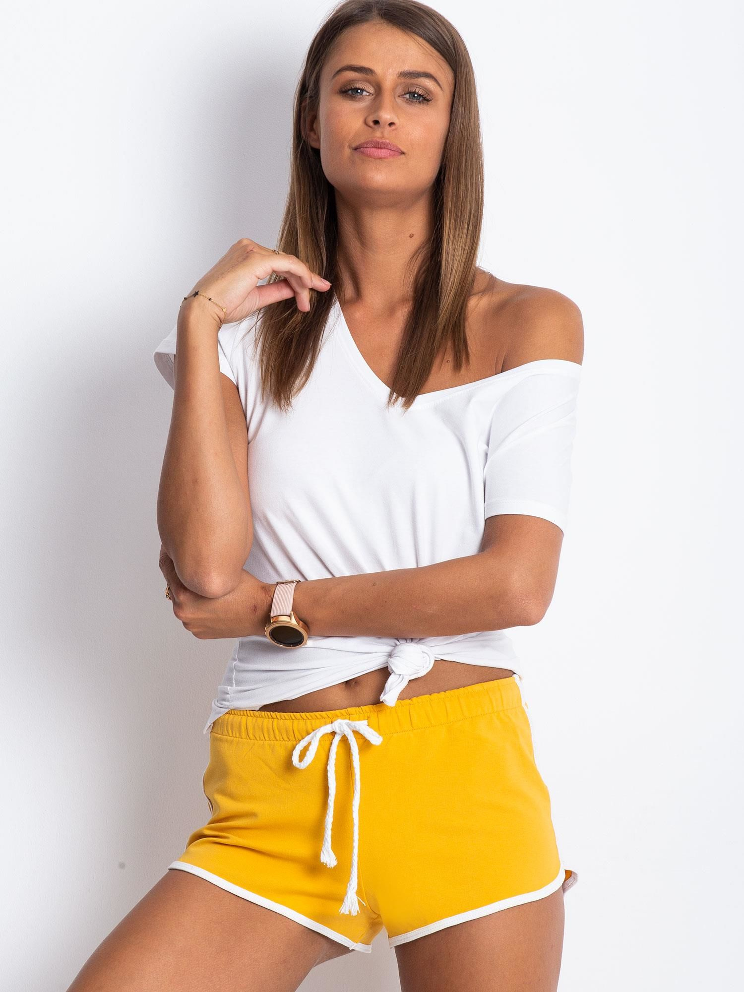 Ciemnożółte szorty dresowe.