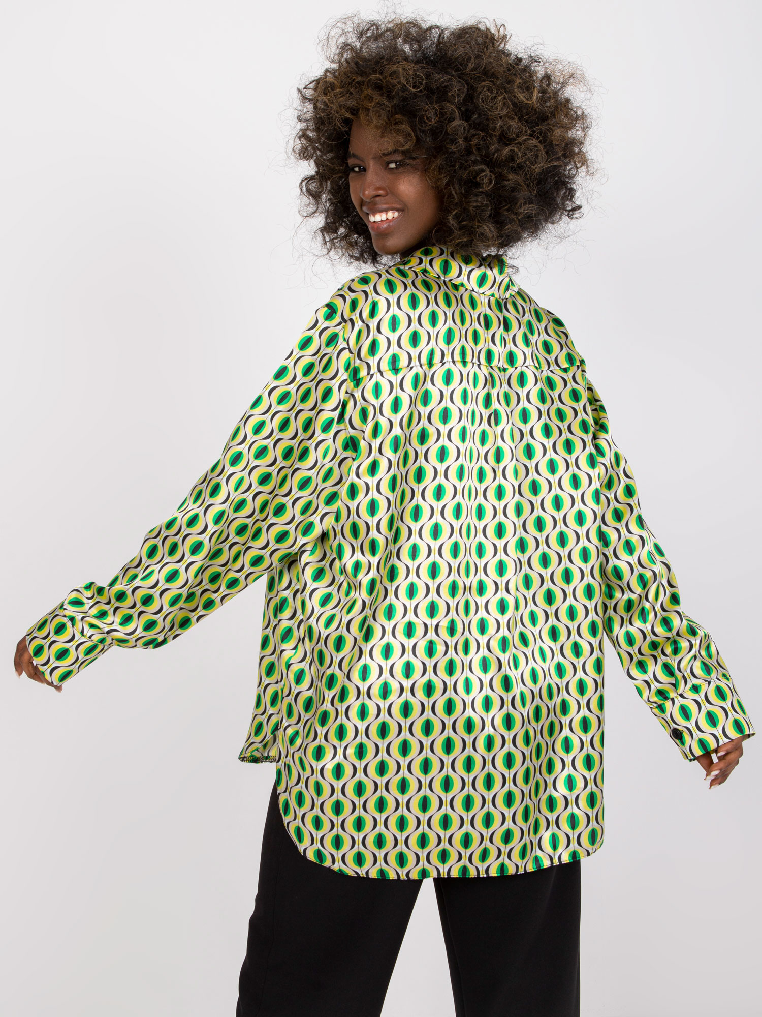- Modelka: Modelka ma na sobie rozmiar one size. Wymiary modelki: wzrost 175 cm, biust 84 cm, talia 61 cm, biodra 91 cm
