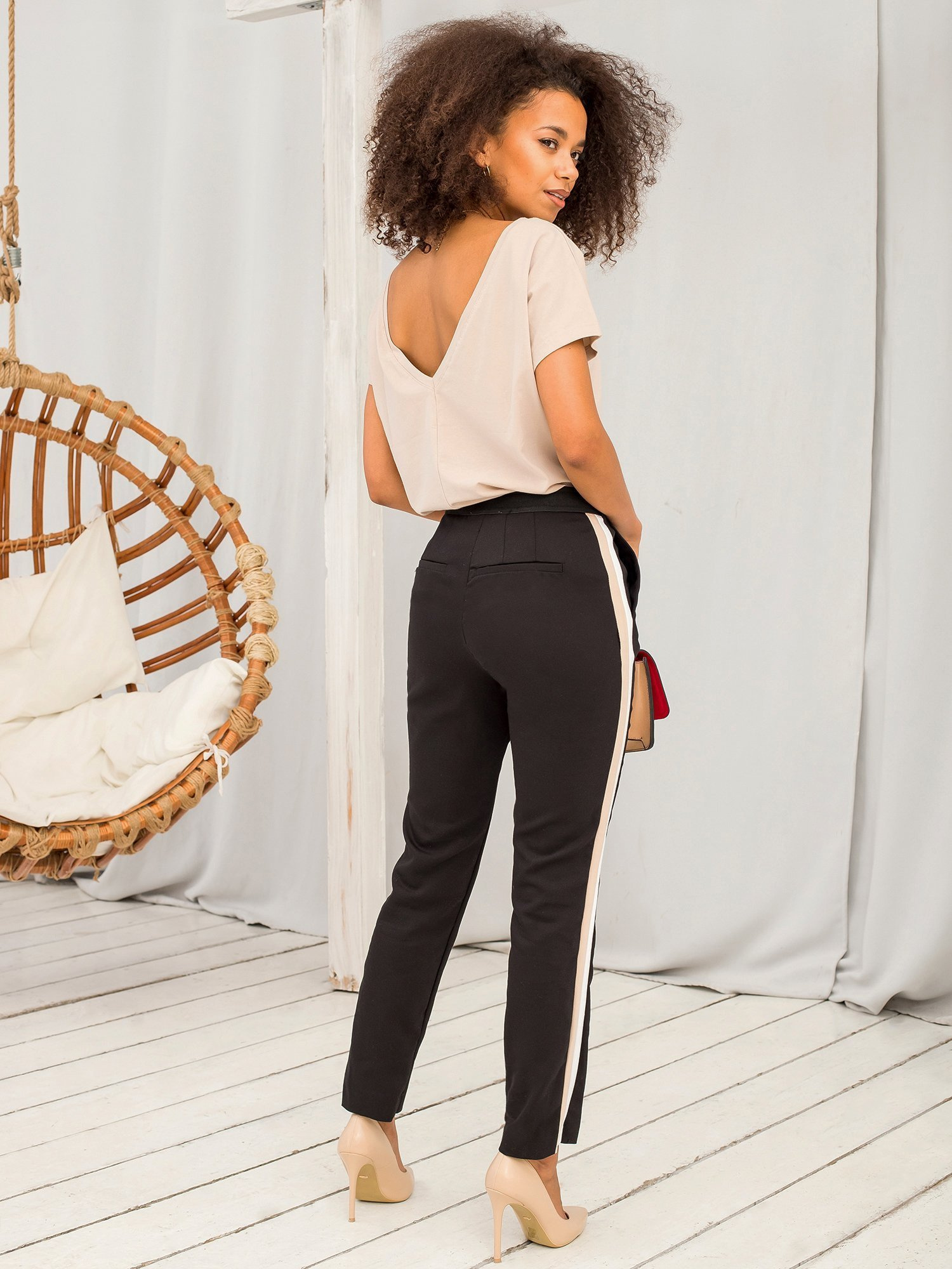 Modelka ma na sobie rozmiar S. Wymiary modelki: wzrost 175 cm, biust 84 cm, talia 65 cm, biodra 92 cm.