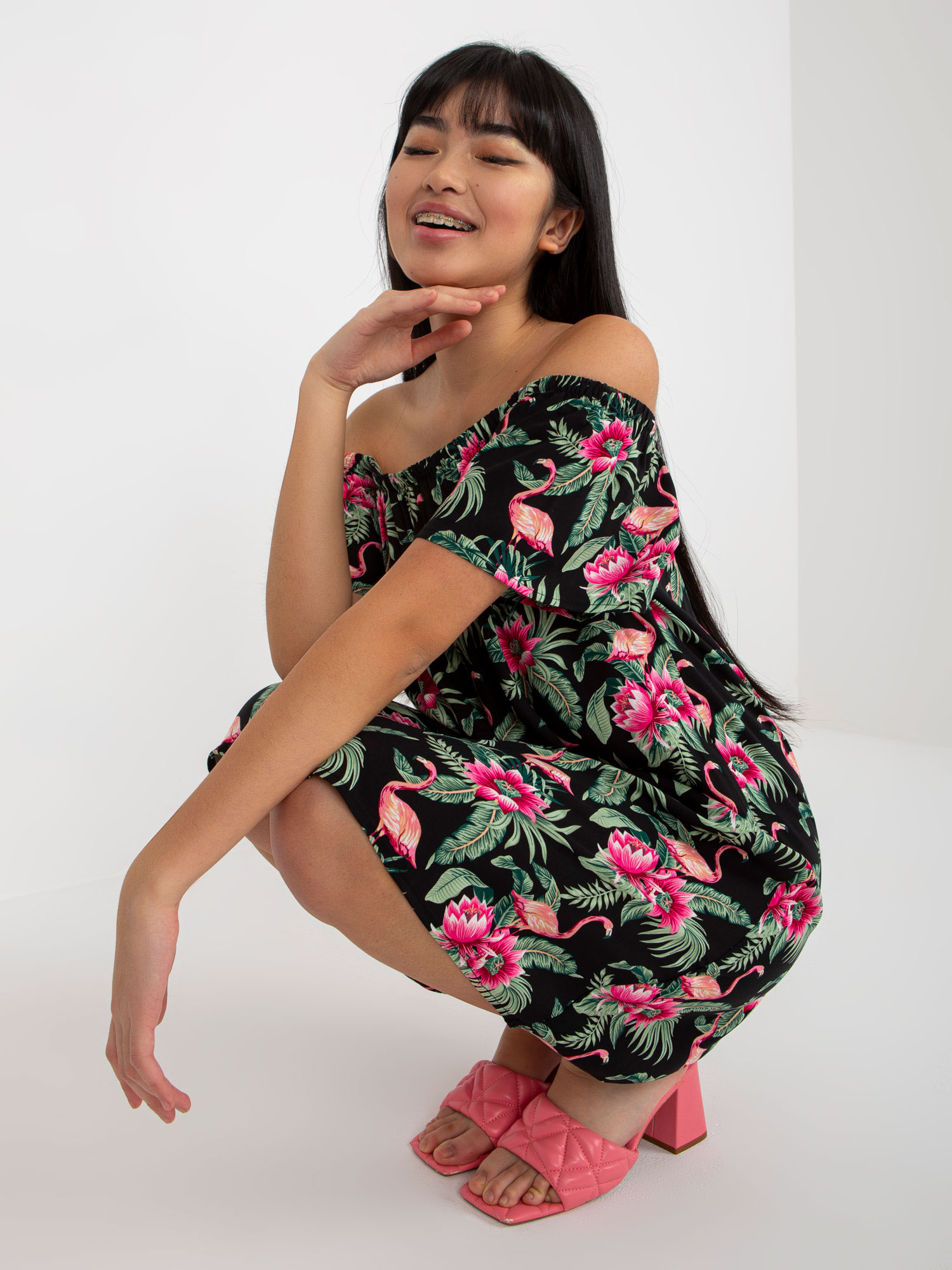 Modelka ma na sobie rozmiar one size. Wymiary modelki: wzrost 172 cm, biust 84 cm, talia 60 cm, biodra 88 cm.