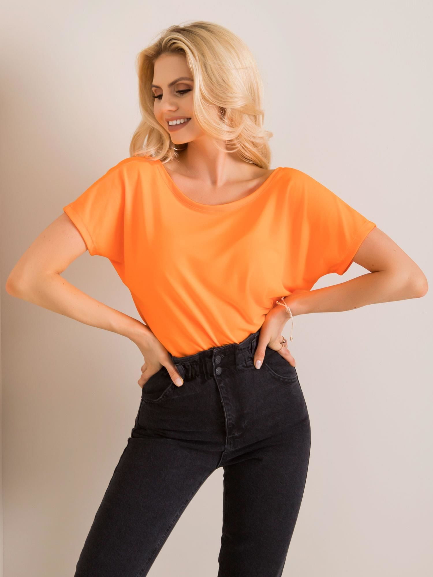 T-shirt z dekoltem z tyłu fluo pomarańczowy.