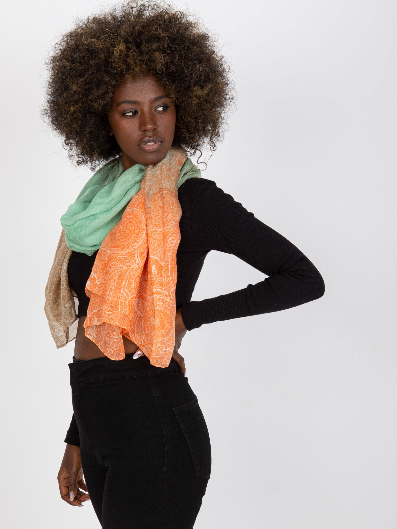 Modelka ma na sobie rozmiar S. Wymiary modelki: wzrost 175 cm, biust 84 cm, talia 61 cm, biodra 91 cm.