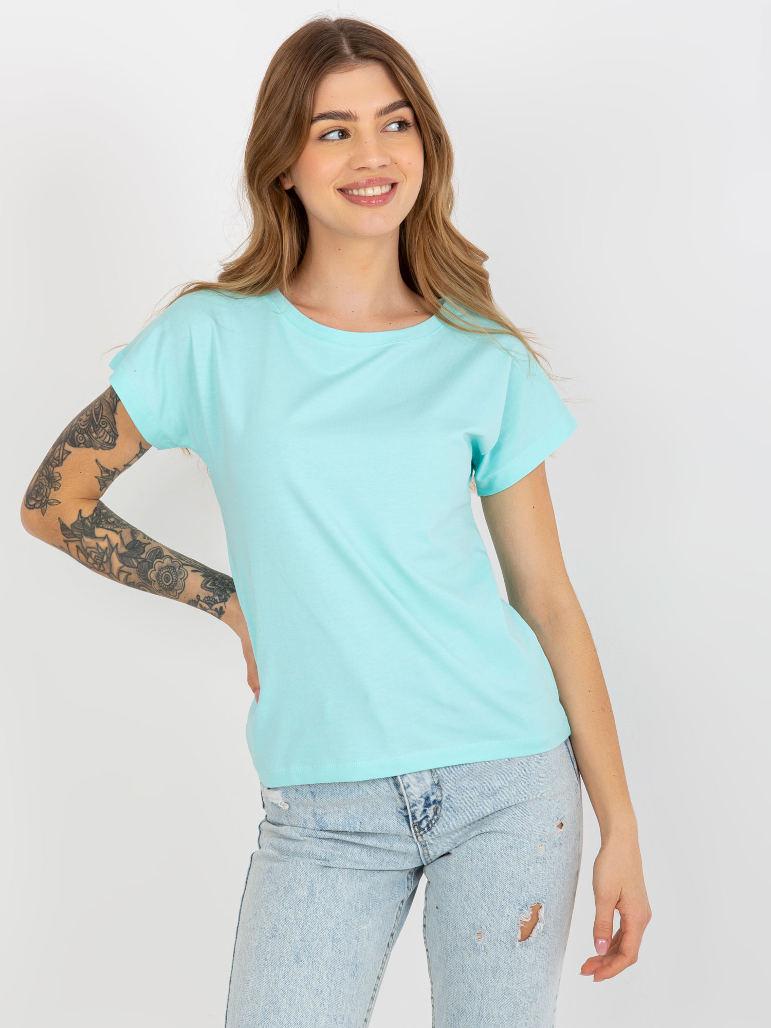 Jasnoniebieski jednokolorowy t-shirt basic z bawełny .