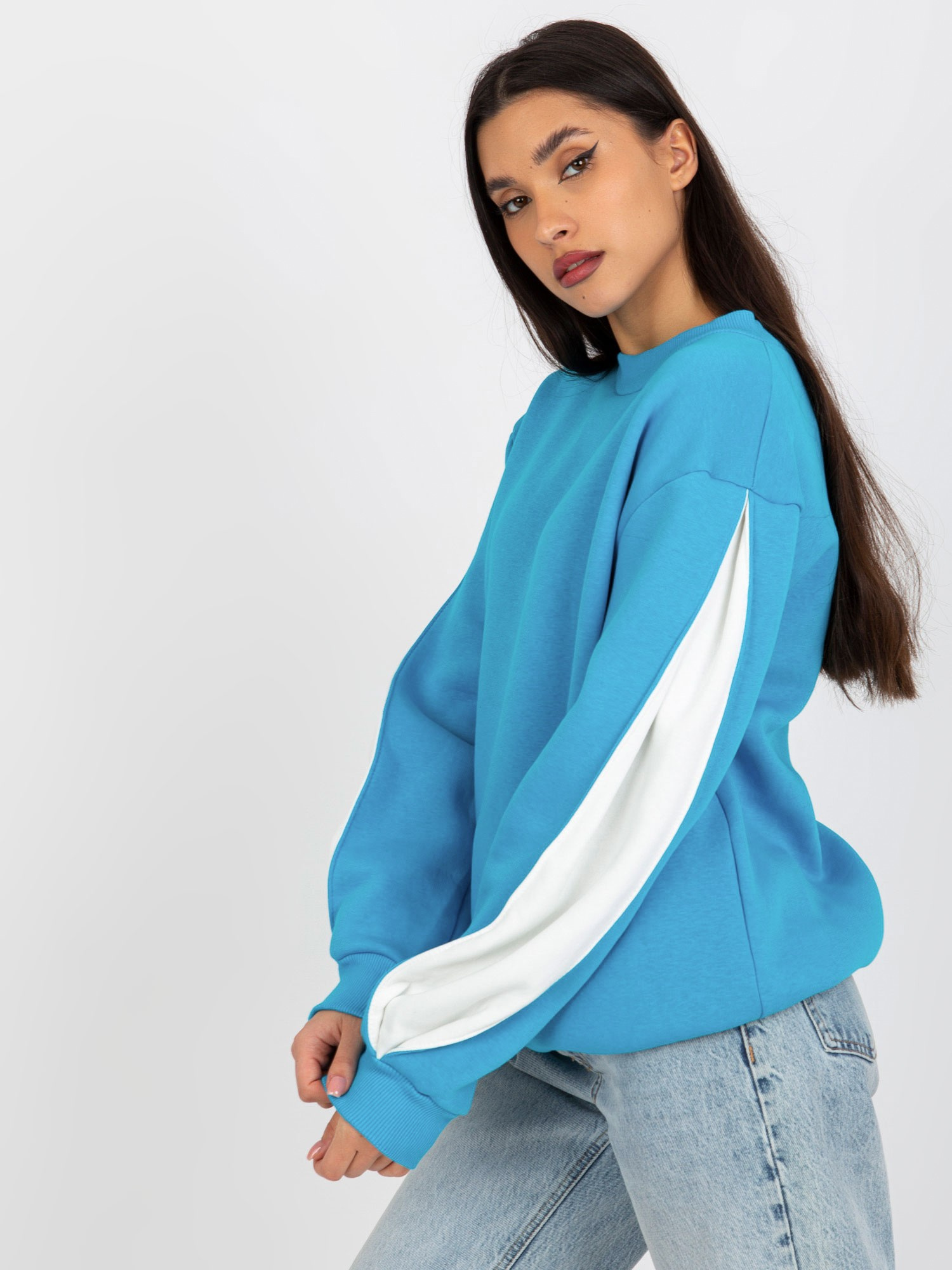 Modelka ma na sobie rozmiar S. Wymiary modelki: wzrost 180 cm, biust 89 cm, talia 63 cm, biodra 93 cm.