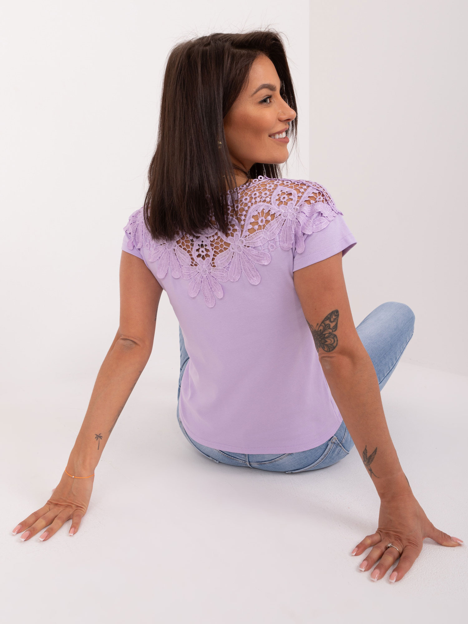 Modelka ma na sobie rozmiar S. Wymiary modelki: wzrost 175 cm, biust 84 cm, talia 65 cm, biodra 92 cm.